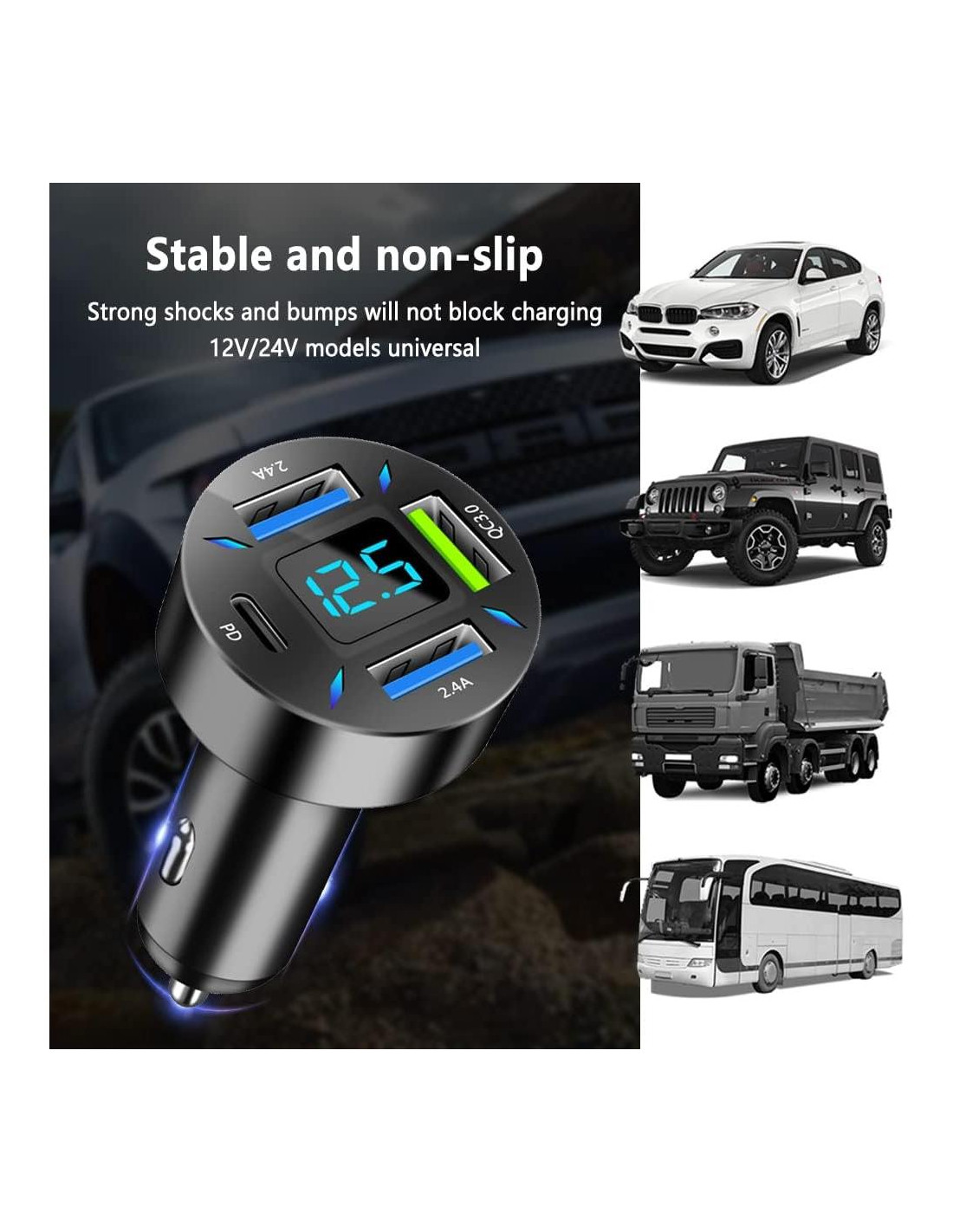 - Cargador de coche rápido QC3.0/PD: El cargador de coche de 4 puertos viene con un puerto USB C PD 2.4A, diseñado para carga rápida de teléfonos, con 20W de potencia, superando con creces la eficiencia de carga del cargador original. Y 1* QC 3.0, 2* puertos USB A, compatible con la mayoría de los cargadores rápidos de teléfonos móviles, puede cargar 4 dispositivos simultáneamente, alcanza el 90% de carga en menos de 45 minutos, logrando estabilidad y velocidad reales.