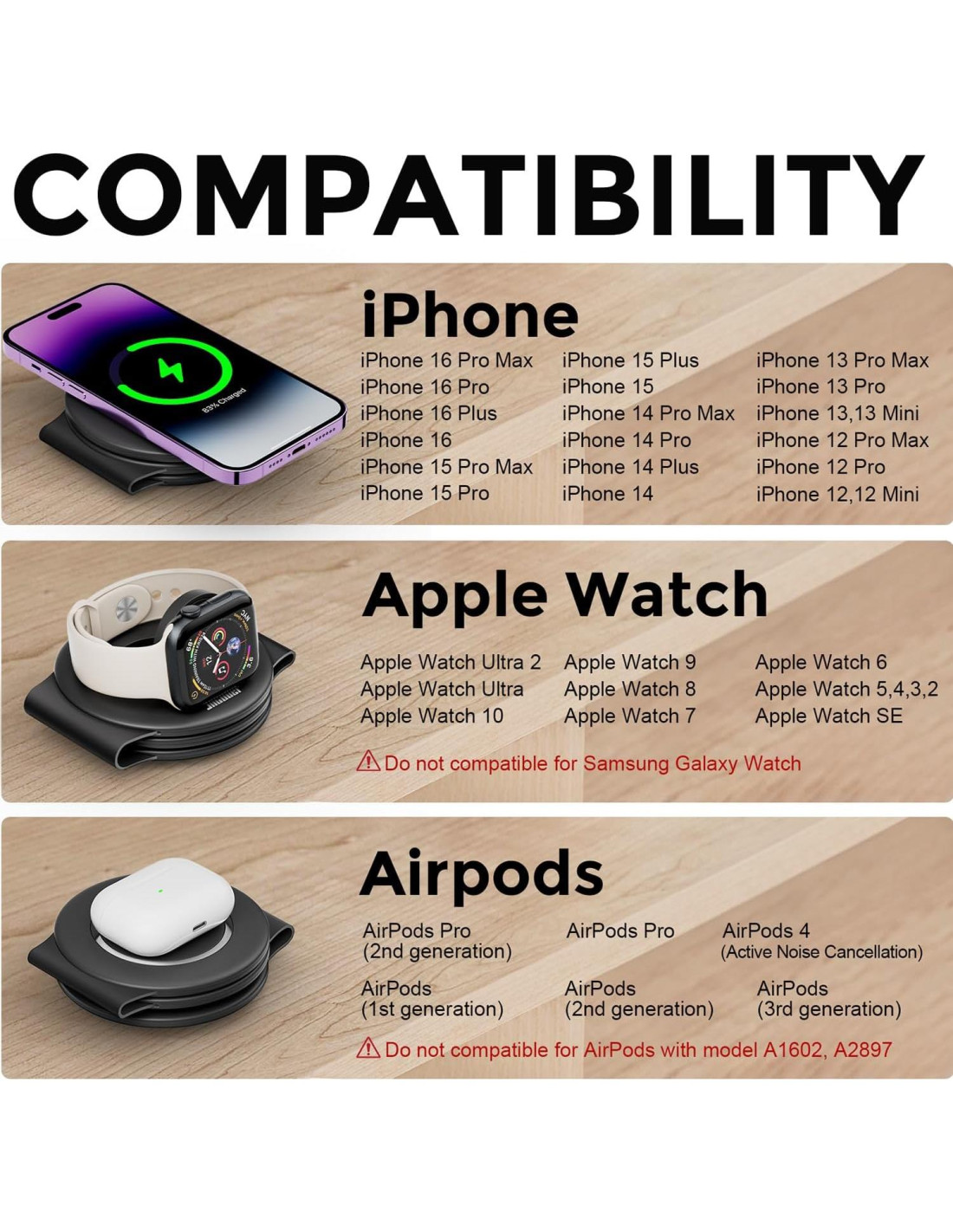 - Cargador Inalámbrico 3 en 1: La Estación de Carga Inalámbrica 3 en 1 para Dispositivos Apple es una gran opción para organizar tu hogar, oficina o sala de reuniones. Te permite decir adiós a los cables enredados y desordenados, manteniendo tu espacio ordenado y organizado, convirtiéndolo en una solución de carga conveniente para tu estilo de vida ocupado.(Cargador rápido incluido)
