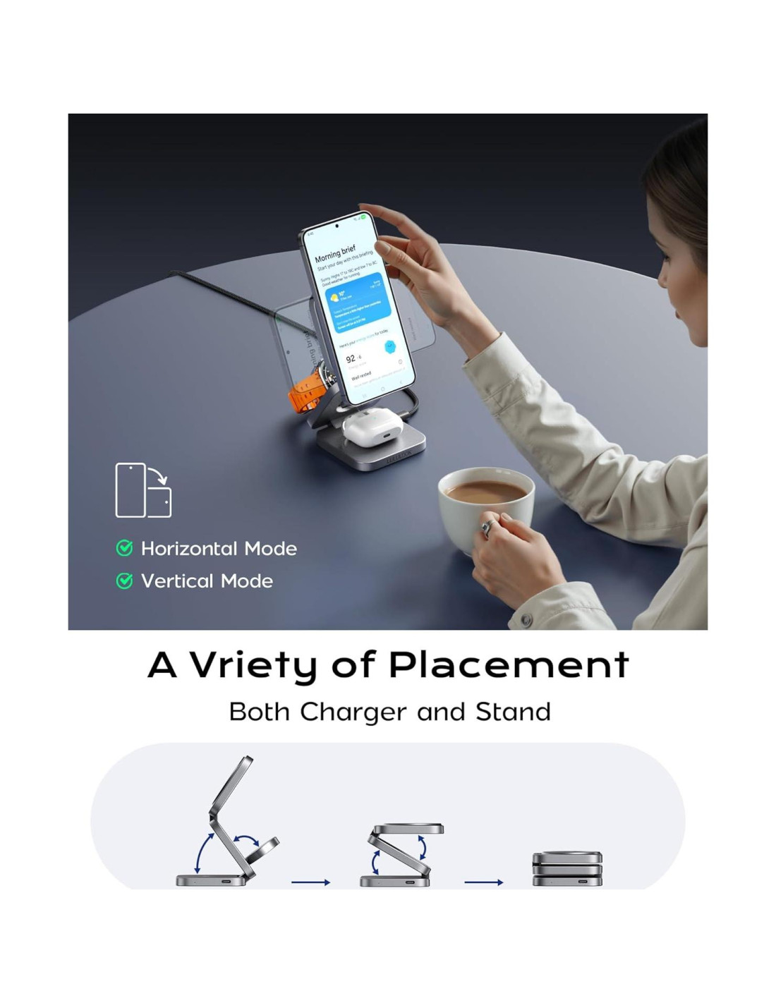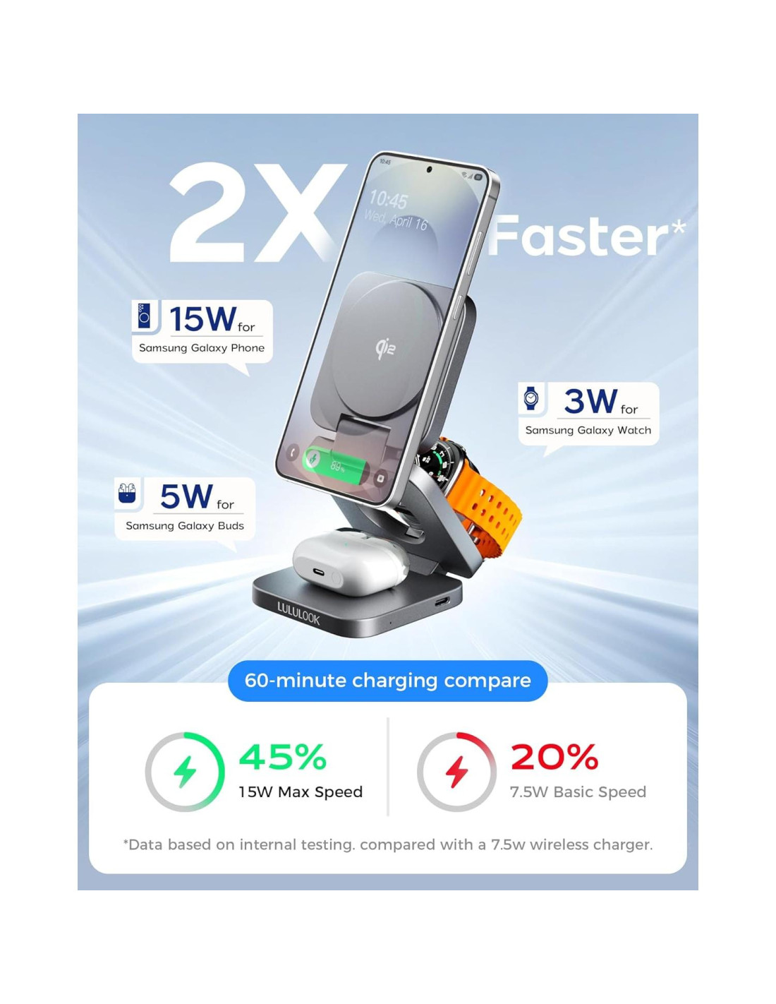 - MagFreedom para Samsung: Con imanes N52 tanto en el cargador inalámbrico para Samsung como en los anillos magnéticos, esta estación de carga samsung ofrece carga instantánea con ajuste magnético, eliminando luchas de alineación y dependencia de fundas ** Función magnética solo para fundas de teléfono magnéticas y anillos magnéticos**