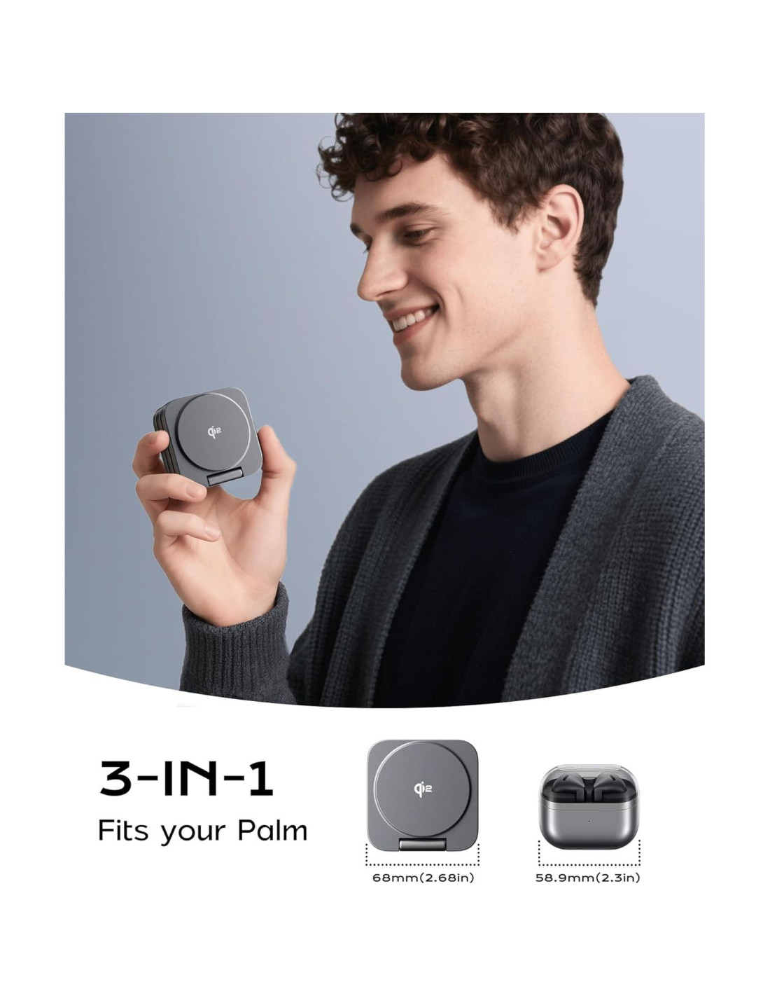 - Se pliega en tu bolsillo: Diseñado para verdadera portabilidad, este cargador inalámbrico para Samsung se pliega en un cubo seguro de 2.4 pulgadas (6.1 cm) con bisagras de aeronáutica resistentes. Despliega para revelar su potencia: un perfil aerodinámico de 0.4 pulgadas (1 cm) que casi coincide con el grosor elegante de tu teléfono Galaxy cuando está plano. Deslízalo en fundas de laptop como una alfombrilla de carga inalámbrica que ahorra espacio, o pliega a 60 para soporte de videollamadas - modos duales listos para escritorios, vuelos y cafeterías