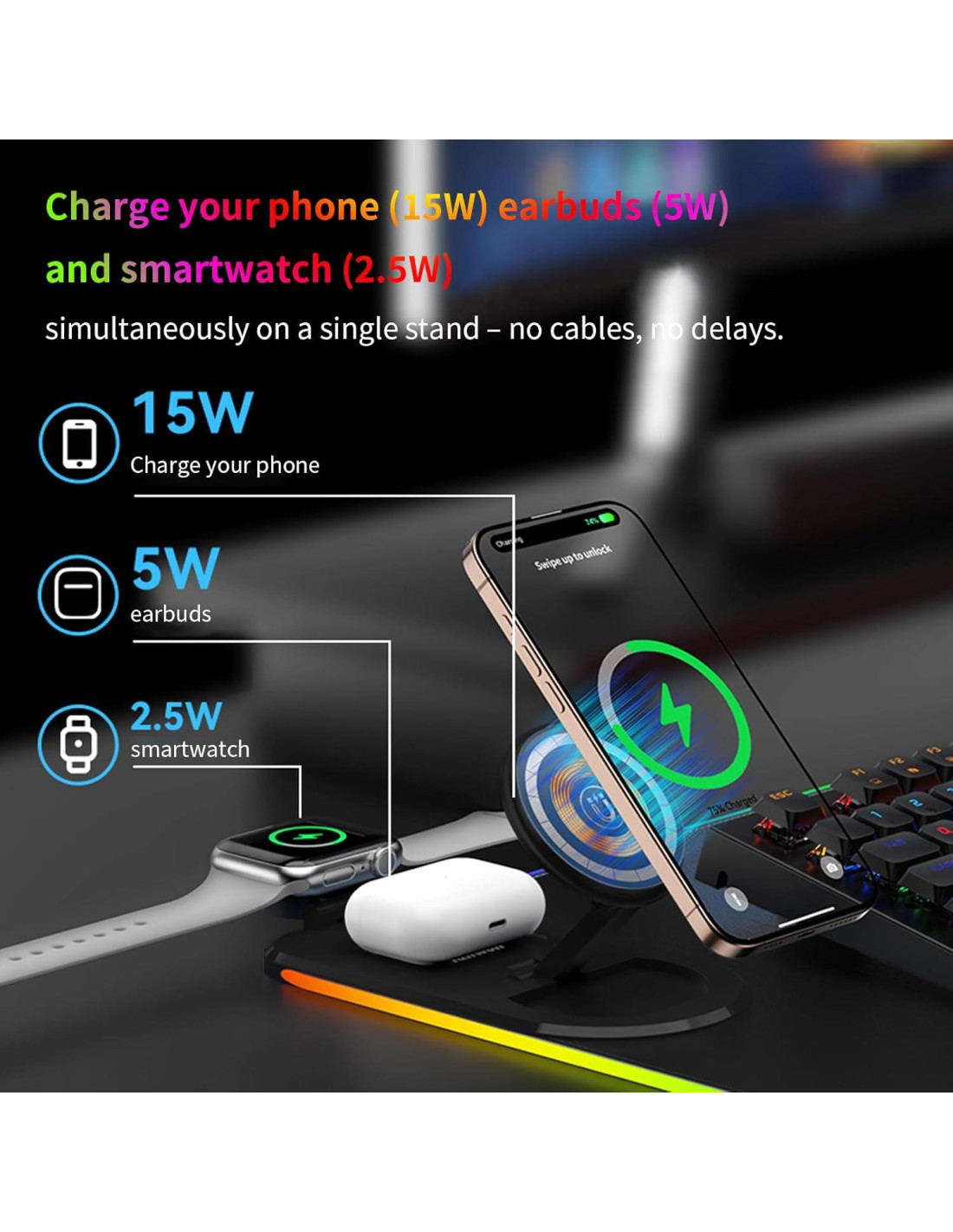 - [ alfombrilla de carga inalámbrica] Alfombrilla de escritorio con función de carga rápida de 15W compatible con iPhone 15/14/13/12/11/X/XR/XS/8 y Samsung Galaxy S23/S22/S21/S20/S10/S9/S8/Note 9/8 con potencia de carga inalámbrica de 15W (Máx) y otros teléfonos inteligentes que soportan carga inalámbrica; Airpods 3ra/ Airpods Pro 2da/Airpods Pro con carga inalámbrica de 5W y otros dispositivos habilitados para Qi; iWatch series (compatible con Ultra 2/Ultra/10/9/8/7/6 con potencia de carga inalámbrica de 2.5W) series. (Nota: 15W requiere adaptador de corriente de 9V 3A, pero el adaptador de corriente no está incluido con esta alfombrilla.)