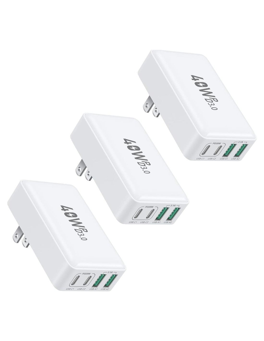 - Estación de carga amigable para viajes de 4 puertos: 1 cargador para 4 dispositivos, no necesitas llevar varios adaptadores de pared, ahorra espacio en tu bolso. El diseño de 4 puertos (USB-A*2 + USB-C*2) permite cargar 4 dispositivos a alta velocidad simultáneamente y de manera estable, y reconoce automáticamente diferentes dispositivos para realizar la carga óptima, ahorrándote más tiempo. ¡Altamente recomendado!