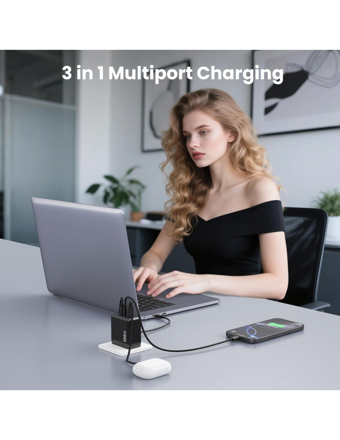 - Satisface todas tus necesidades de carga. Con 2 puertos USB-C y 1 puerto USB-A, el bloque de carga de 130W ocupa solo un enchufe para cargar tu teléfono celular, tableta o computadora portátil al mismo tiempo, el bloque de cargador USB C mejora tu eficiencia diaria, se adapta fácilmente a tu estilo de vida y satisface todas tus necesidades de carga.
