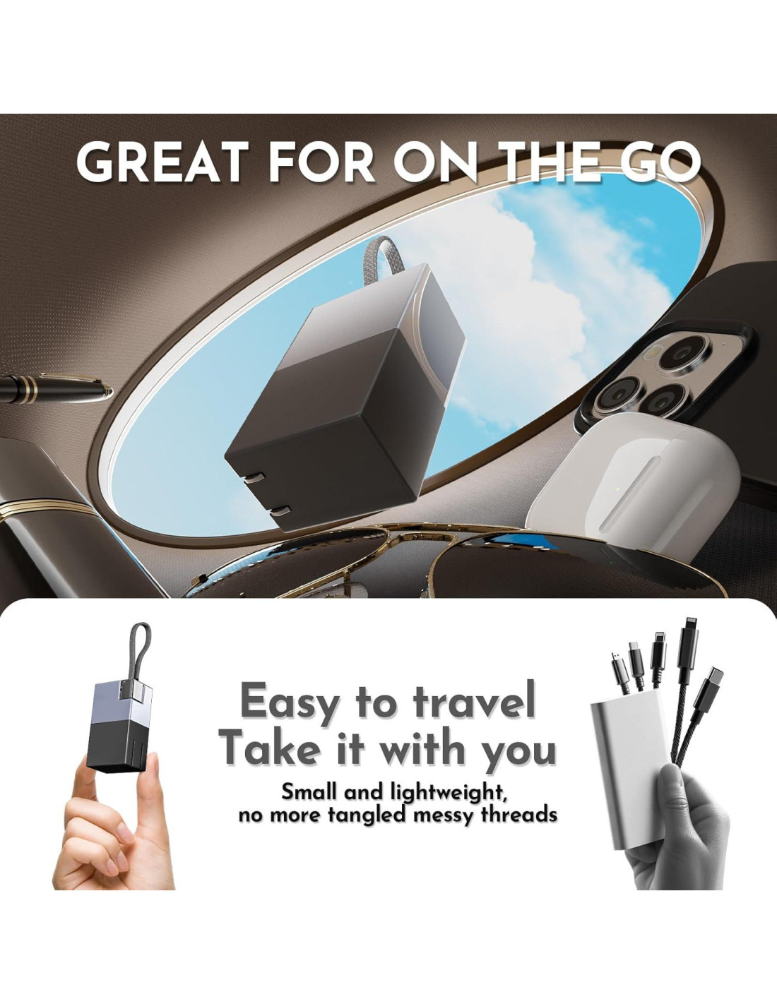 - POWER BANK USB C CARGA RÁPIDA: Este cargador portátil USB C de 22.5W, paquete de batería cargador de teléfono portátil con cable de datos incorporado y clip antideslizante es fácil de llevar y colgar en tu mochila sin caerse. No necesitas llevar un cable de datos extra.