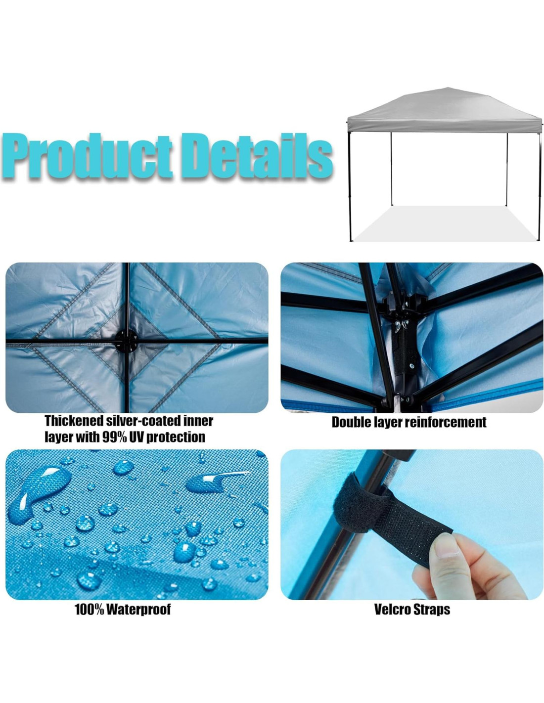 - Usos recomendados para el producto: Camping, Dosel, Actividades al aire libre, Mercado al aire libre, Fiesta, Picnic, Recreación, Fiesta de maletero, Ferias comerciales