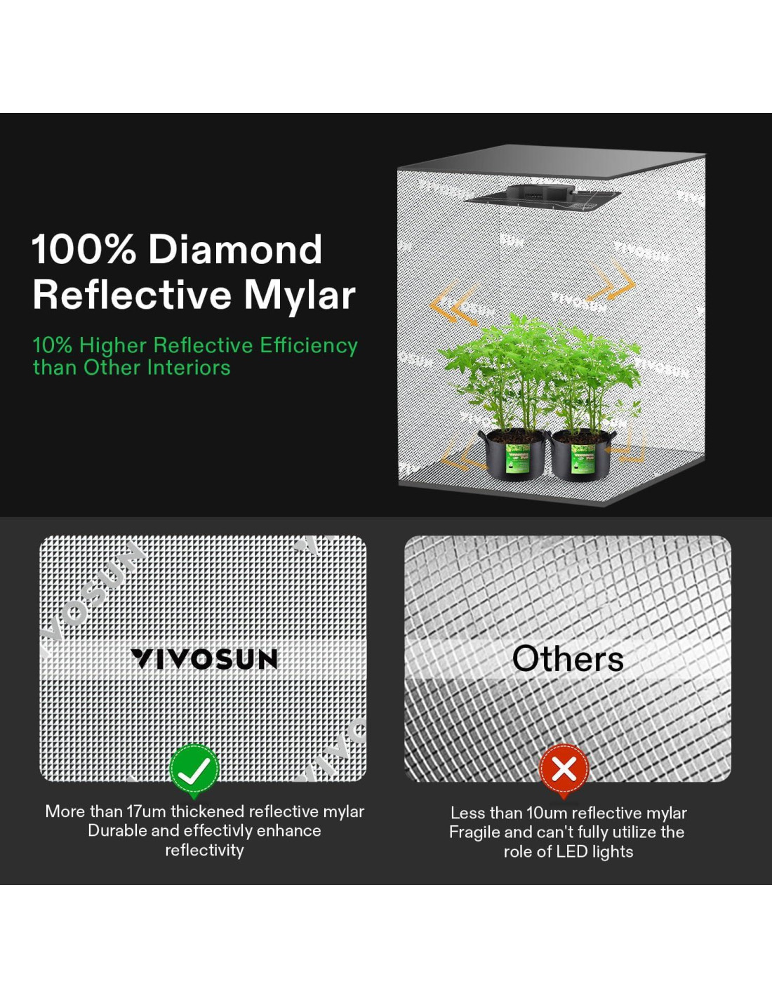 - Entorno de Cultivo Confiable y Estable: Las condiciones de cultivo al aire libre son inestables e impredecibles; Sin embargo, en la Carpa de Cultivo 2-en-1 3x2 de Vivosun, tienes control sobre la luz, la temperatura, la humedad y las condiciones del suelo, por lo que puedes adaptar todo a las necesidades específicas de tu planta, mantener tu jardín a salvo de vecinos ruidosos, mascotas molestas y criaturas dañinas, asegurando resultados máximos