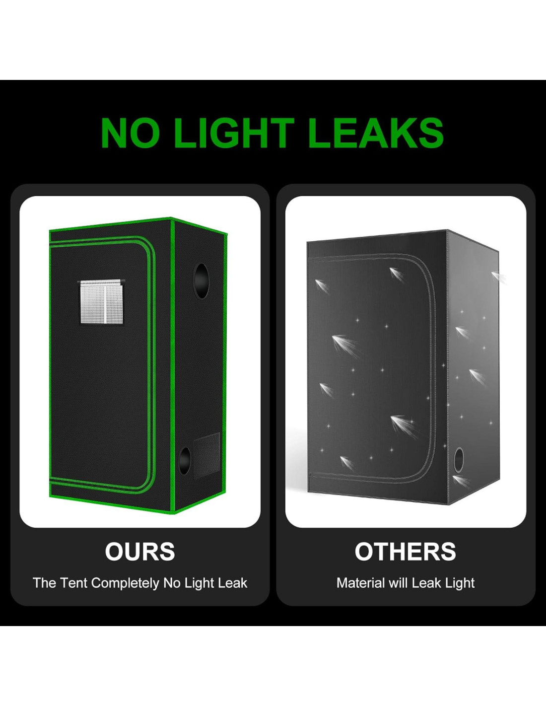 - [Alta Calidad] : Esta tienda de cultivo mide 18x18x48 (45.72x45.72x121.92 cm) y está forrada con una película de poliéster impermeable altamente reflectante y lona de 600D cosida doblemente. Es completamente a prueba de luz y resistente a desgarros, y tiene una excelente durabilidad, seguridad y estabilidad. Puede soportar un uso prolongado para asegurar la temperatura adecuada y hacer que las plantas crezcan sanas.