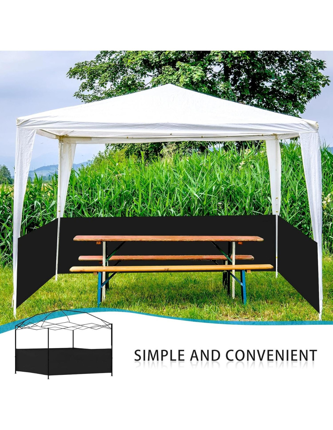- Uso Multifuncional: diseñada para la mayoría de las carpas de 10 x 10 pies (3.05 x 3.05 m), 10 x 15 pies (3.05 x 4.57 m), 10 x 20 pies (3.05 x 6.10 m), nuestra pared lateral de carpa a medias es esencial para eventos al aire libre, mercados, ferias comerciales, picnics familiares, eventos deportivos, negocios, fiestas y más! Sirve como un accesorio versátil que asegura protección contra el viento, la lluvia, la privacidad y puede mejorar significativamente la apariencia de la configuración de su evento.