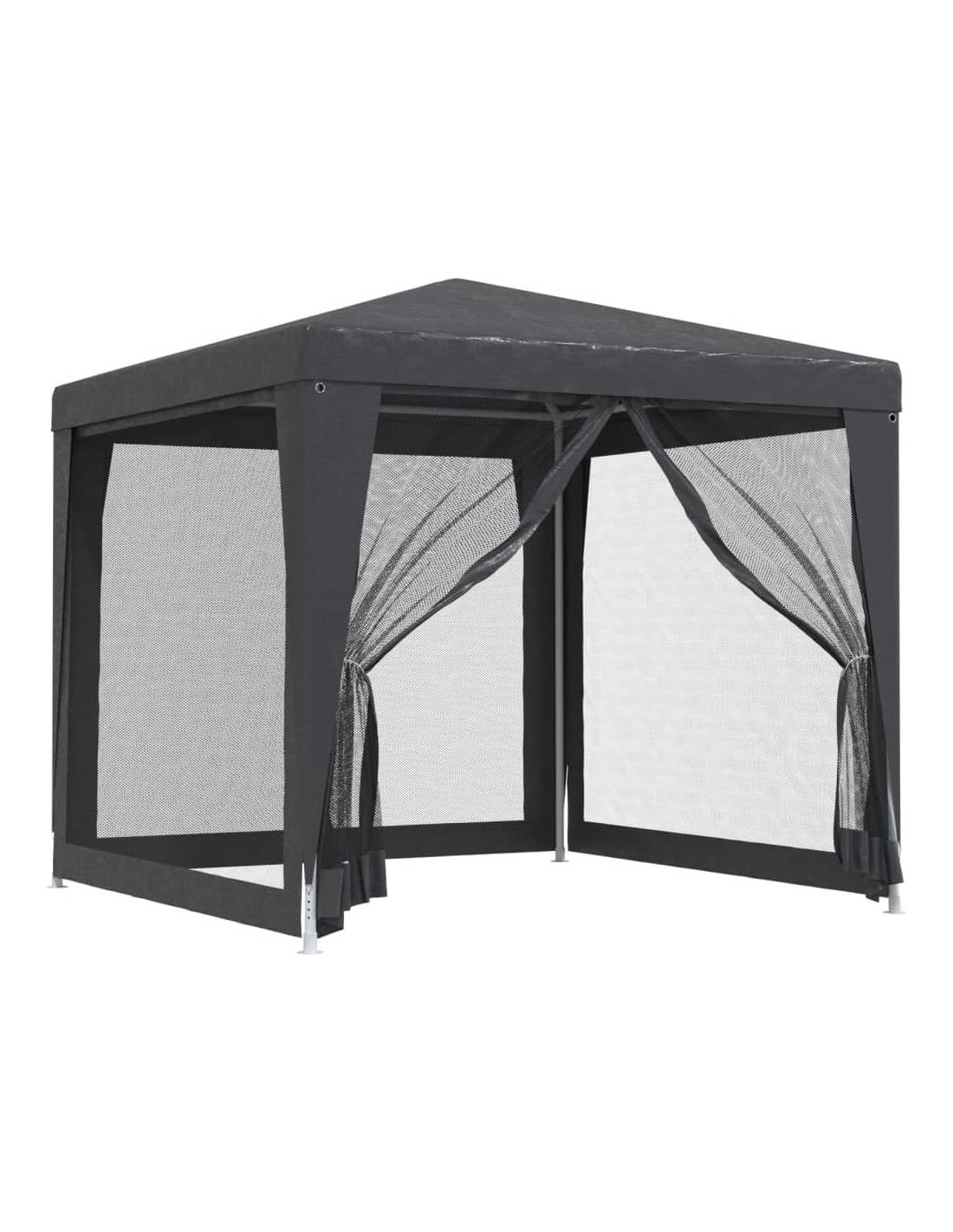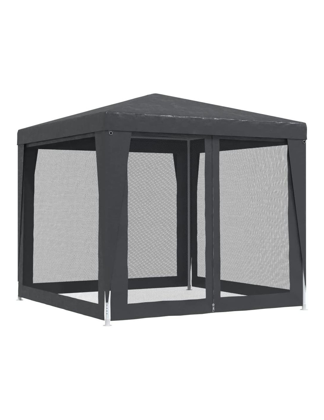 Esta carpa de fiesta súper genial, con un marco de hierro resistente, techo resistente al agua y cuatro paredes laterales de malla, es un refugio ideal del sol. MATERIAL PREMIUM - Este pabellón está hecho de polietileno de alta densidad (HDPE) que te protege de la luz solar directa y permite suficiente viento. El HDPE está especialmente tratado, por lo que también es resistente al agua. Marco de hierro: El marco de hierro de este pabellón asegura robustez y estabilidad. Diseño Práctico La carpa tiene cuatro paredes laterales de malla, que te protegen de los molestos insectos. Y una de las paredes laterales tiene una cremallera para entrada y fácil acceso. Amplias Aplicaciones Esta carpa de evento es una opción ideal para una amplia gama de eventos al aire libre, como espectáculos, bodas, fiestas, barbacoas, festivales, etc. Nota: Este producto NO debe usarse NUNCA en mal tiempo, como viento fuerte, lluvia intensa, nieve, tormenta, etc. Cada producto viene con un manual de ensamblaje en la caja para un fácil montaje. Color: antracita. Material: HDPE (Polietileno de Alta Densidad) con recubrimiento, hierro recubierto en polvo Dimensiones: 250 x 250 x 245 cm (L x A x A) Altura de alero desde el suelo: 2 m Resistente a los rayos UV. Resistente al agua 4 paredes laterales de malla, un lado tiene una cremallera para entrada Contenido de la caja: 1 x carpa. 1 x cuerda. 8 x estacas de tierra.