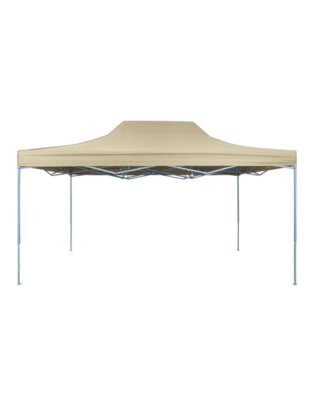 Jardín y Césped / Vida al Aire Libre / Estructuras al Aire Libre / Toldos y Gazebos Esta carpa plegable será ideal para una amplia gama de funciones al aire libre, como espectáculos, bodas, fiestas, barbacoas, festivales, etc. También puedes instalarla en tu patio trasero como un gran toldo para tu familia y amigos. Hecha de acero con recubrimiento en polvo de alta resistencia, esta carpa para fiestas pop-up es extremadamente duradera. La cubierta del techo está hecha de tela oxford con un recubrimiento de PVC y es 100% protectora y UV. La marquesina es plegable para un fácil almacenamiento y transporte. Los accesorios de instalación, como cuerdas de sujeción y estacas para el suelo, están incluidos en la entrega y el ensamblaje es muy fácil. NOTA: Este producto NO debe usarse nunca bajo mal tiempo, como viento fuerte, lluvia intensa, nieve, tormenta, etc. Color del techo: Blanco crema Material del techo: Tela oxford 600D con recubrimiento de PVC Material del marco: Acero con recubrimiento en polvo Dimensiones: 169.7" x 114.6" x 124" (L x A x A) 100% protector UV 4 cuerdas y 8 estacas para el suelo incluidas Ensamblaje fácil