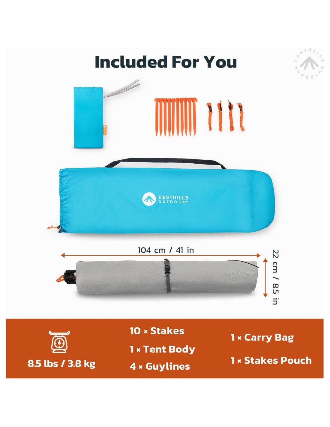 - Versátil y Conveniente: Es inevitable: los largos días en la playa tendrán sorpresas inesperadas. El diseño versátil del Instant Shader puede manejarlas todas. Cierra la parte frontal para cambiarte a ropa seca en privacidad. Protege tu carpa de vientos fuertes con cuerdas de sujeción. Guarda objetos de valor en el bolsillo de malla superior.