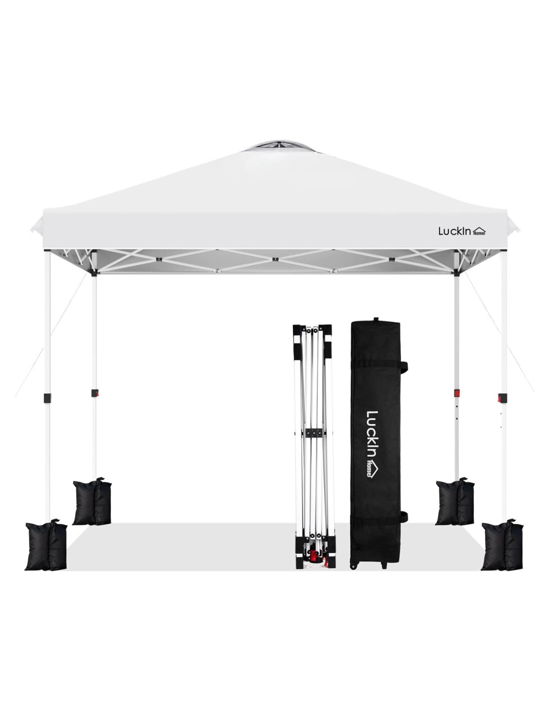 - [Espaciosa y Ajustable] Sombra de 10x10 pies (3,05 m x 3,05 m) para 8 Personas - 3 configuraciones de altura (6.5 pies (1,98 m) a 8.2 pies (2,49 m)) con botones sin pellizcos. Sin travesaños para máxima altura