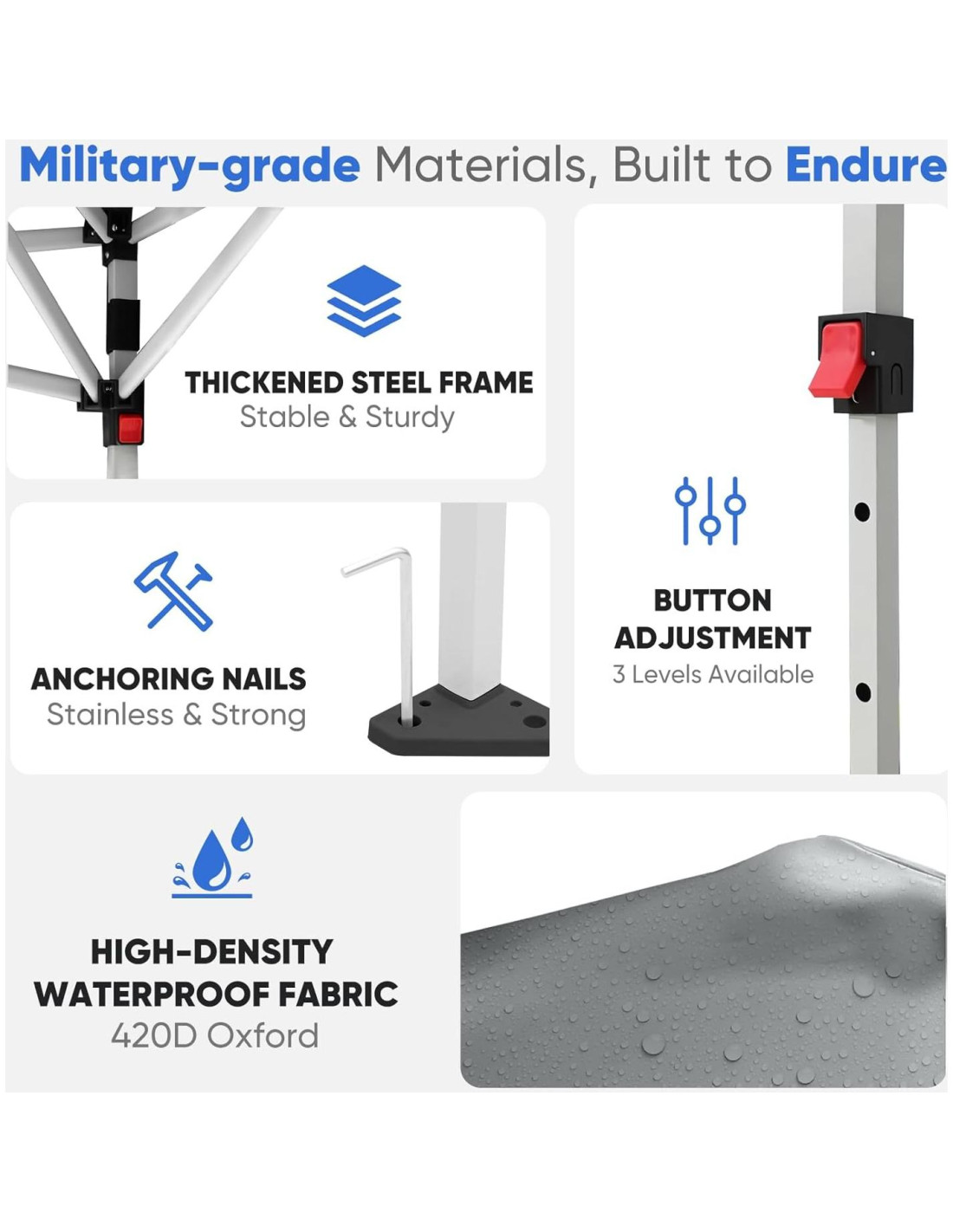 - Proporciona protección confiable contra el clima para espacios al aire libre: ideal para patios, camping, mercados y eventos deportivos.