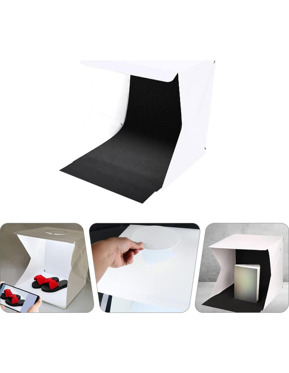 Caja de fotos-- te ofrece más opciones para realizar fotografía en cualquier momento y lugar, se monta y desmonta sin esfuerzo. Estudio de caja de luz-- la luz también puede distribuirse en cada rincón de la cabina de fotos para producir una luz más suave y uniforme.