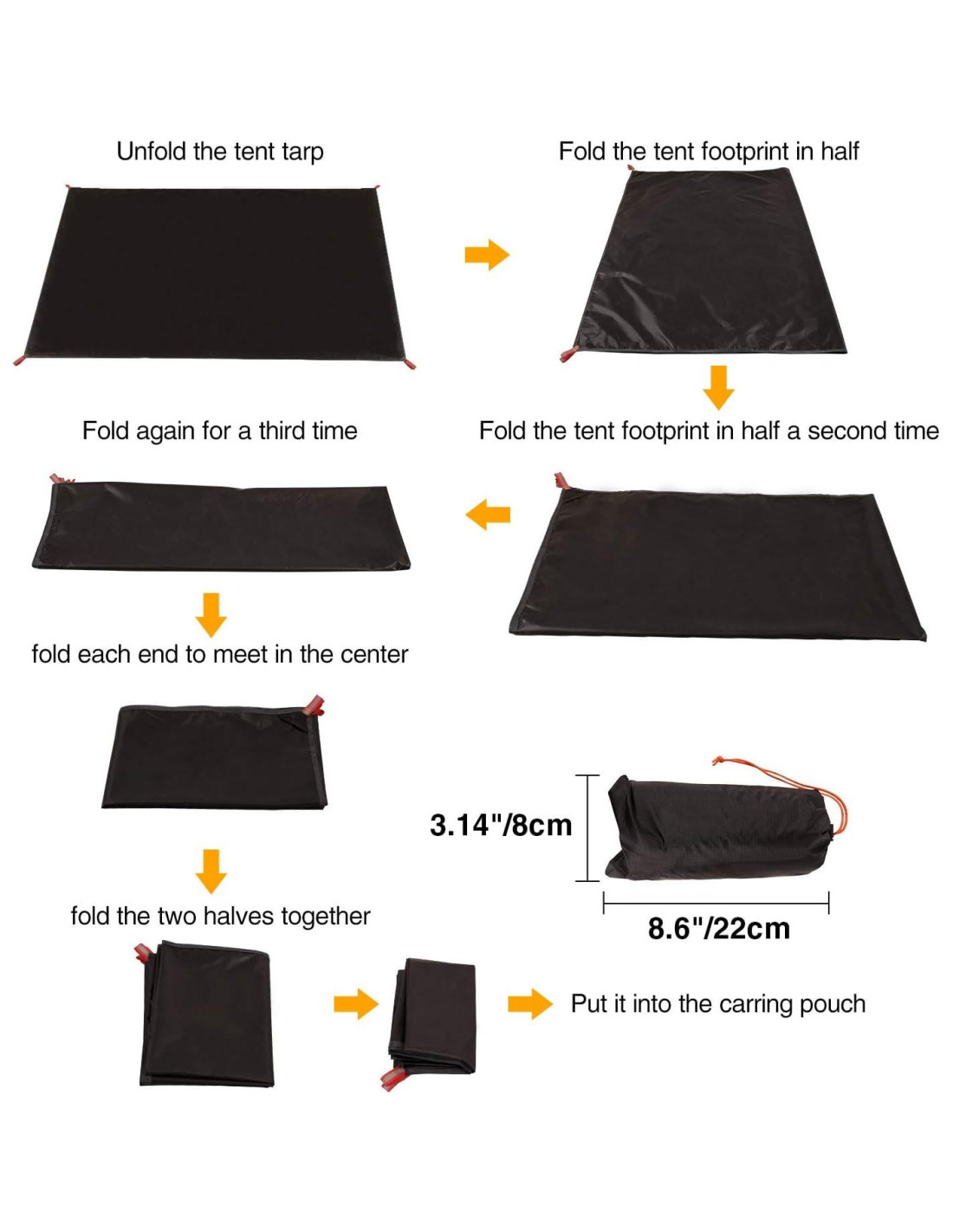 - GRANDE: 140cmx220cm (55''x87''), perfecto para 1-2 personas. Puedes colocar la tela de suelo del campamento debajo de tu tienda para proporcionar una capa adicional de humedad