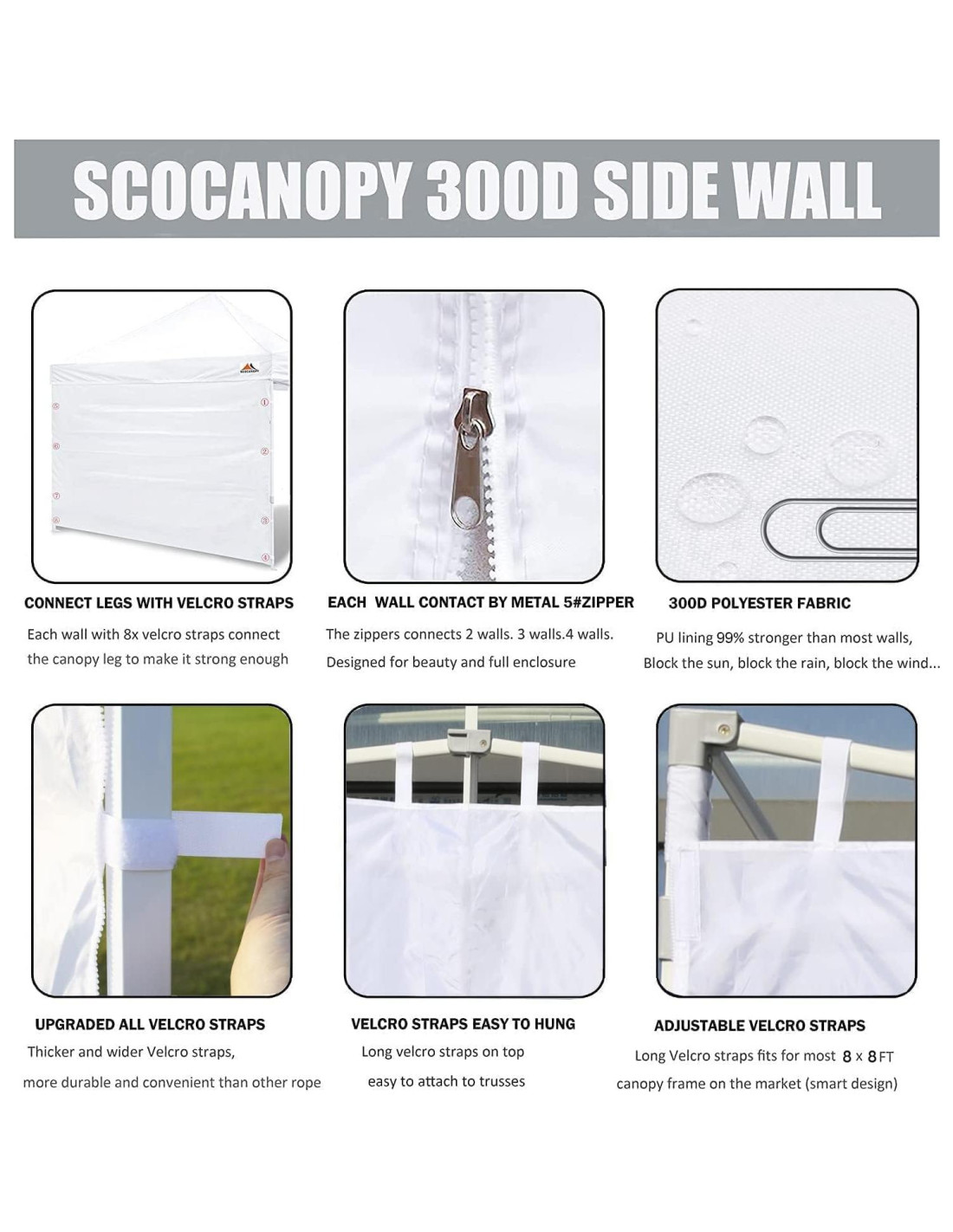 - DIMENSIÓN: Tamaño de la pared lateral 86x100 pulgadas (218.44x254 cm) que se adapta a la mayoría de las carpas plegables de 8x8 pies (2.44x2.44 m) de patas rectas en el mercado