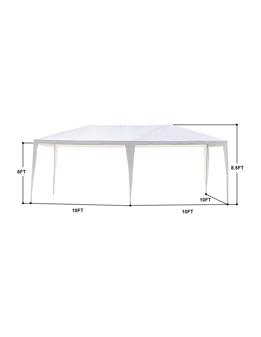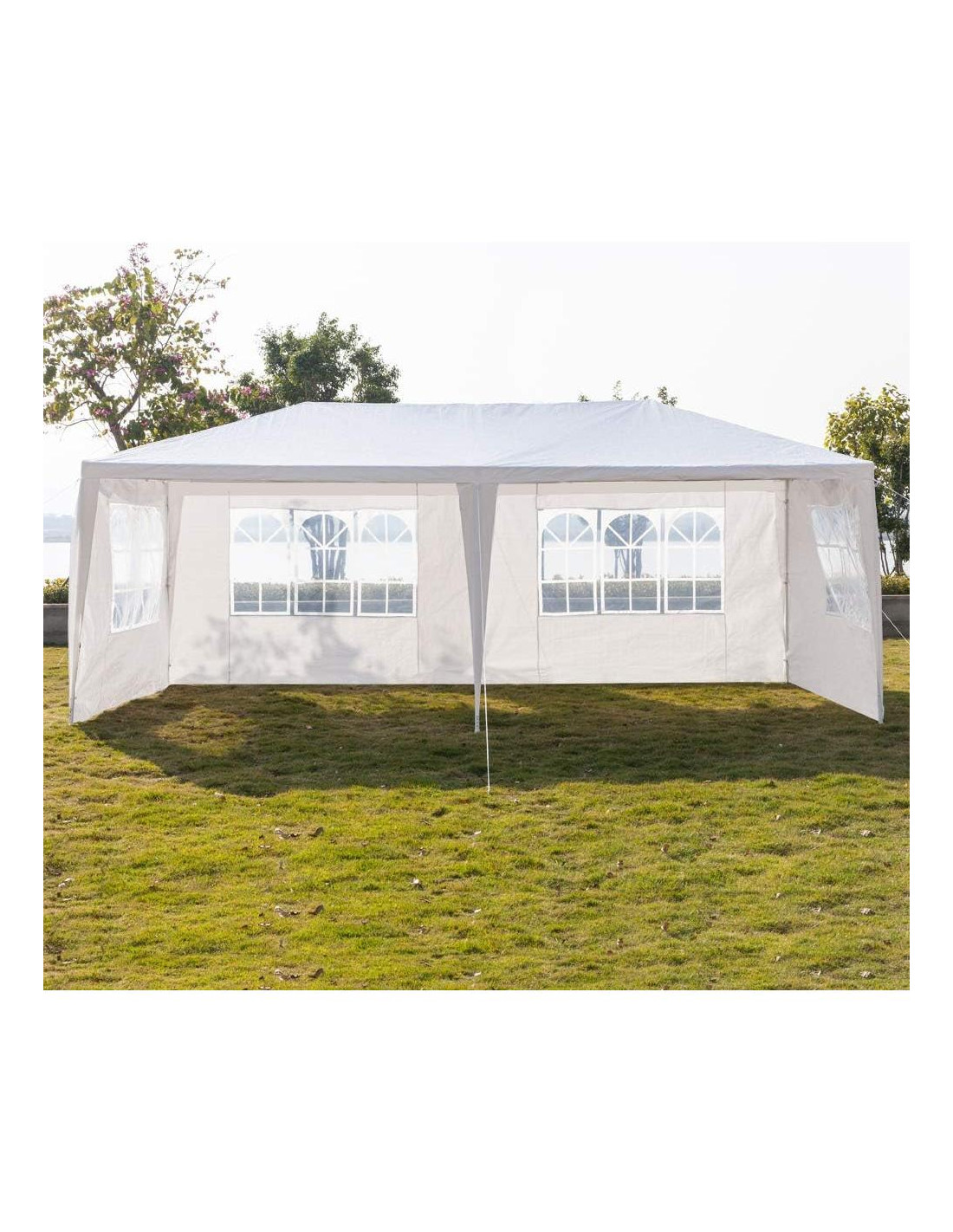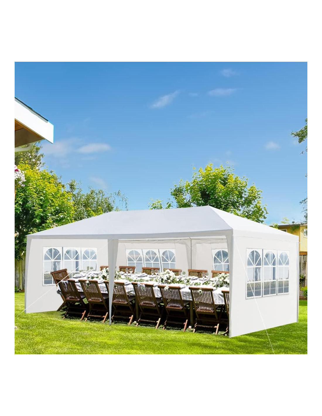 Introducciones: Completa tu fiesta con esta espaciosa y versátil Carpa de Fiesta Exterior! Definitivamente es un elemento imprescindible para una fiesta en tu patio trasero o para un evento comercial al aire libre. Nuestra carpa de fiesta exterior ofrece refugio de los rayos del sol y de la lluvia ligera, proporcionando el espacio perfecto para servir comida y bebida. Y la carpa es una maravillosa opción para añadir ambiente festivo que pondrá a todos tus invitados en el ánimo de celebrar. Las paredes laterales removibles te permiten dejar los lados abiertos tanto como desees. Características: [Grande y espaciosa] La carpa de fiesta exterior de 3m x 6m puede albergar hasta 30 personas, lo que la convierte en una opción maravillosa para una variedad de eventos al aire libre como fiestas, bodas, graduaciones, mercados de pulgas, pequeños negocios, picnics, eventos deportivos, mesas de artesanías y mucho más. [Paredes laterales removibles con ventanas] Un total de 4 paredes laterales removibles se pueden instalar de la manera que desees. Cada pared tiene una ventana clara para asegurar la máxima iluminación en la carpa. [Material impermeable duradero] La tela de PE de alta calidad proporciona un excelente refugio de los rayos del sol y de la lluvia ligera. [Conexión de tubería mejorada para mayor estabilidad] Nuestra carpa utiliza conexión de tubería roscada para ofrecer un soporte más fuerte. También incluye cuerdas y estacas para mantener tu carpa firmemente. [ATENCIÓN] No uses la carpa en días ventosos o lluviosos. Por favor, usa cuerdas y estacas para asegurar la carpa.