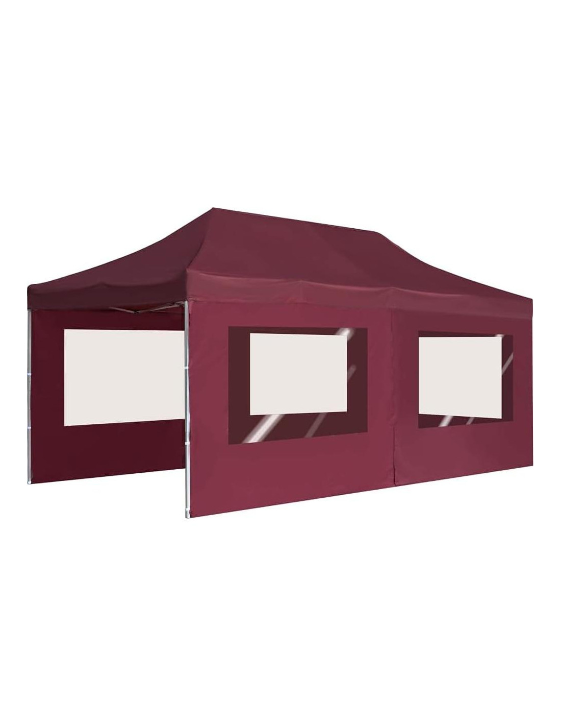 Experiencia al Aire Libre Mejorada Transforma cualquier reunión al aire libre en un evento sofisticado con nuestra carpa plegable profesional. Con unas medidas de 6.0m x 3.0m, esta carpa proporciona amplio espacio para albergar cenas, barbacoas y reuniones familiares. Su color rojo vino añade un toque de elegancia, convirtiéndola en una adición a la decoración de tu evento. Construcción Duradera y Segura Construida con un marco de aleación de aluminio de alta resistencia, esta carpa promete estabilidad. Las propiedades resistentes a la corrosión aseguran que soportará el uso estacional, convirtiéndola en un compañero confiable para todas tus celebraciones al aire libre. Los materiales de montaje incluidos aseguran una instalación segura, brindándote tranquilidad durante tus reuniones. Protección para Todas las Climas La carpa cuenta con un techo impermeable con un recubrimiento de PVC que bloquea efectivamente los rayos dañinos mientras te mantiene cómodo. Para una mayor protección en lluvias intensas, se recomienda tratar la carpa con un spray impermeable. Aunque esta carpa proporciona una excelente cobertura, no debe usarse en condiciones climáticas severas. Fácil Montaje y Almacenamiento Diseñada para la conveniencia, la naturaleza ligera y plegable de la carpa permite un fácil transporte y un montaje rápido, haciéndola fácil de usar para todos. Cuando no está en uso, se puede almacenar fácilmente, liberando espacio valioso en tu hogar o garaje. Características de Diseño Elegante Cada panel lateral de la carpa está equipado con ventanas de PVC, permitiendo que la luz natural ilumine el espacio mientras proporciona privacidad. Este diseño reflexivo mejora la atmósfera de tu reunión, haciéndola sentir más acogedora y agradable para tus invitados.