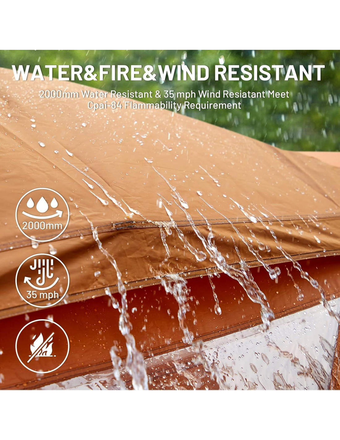 - Vestíbulo extra: Proporciona espacio de almacenamiento adicional para equipo al aire libre, para que te mantengas organizado y libre de desorden durante los viajes de camping. Adecuado para eventos al aire libre, camping o picnics.