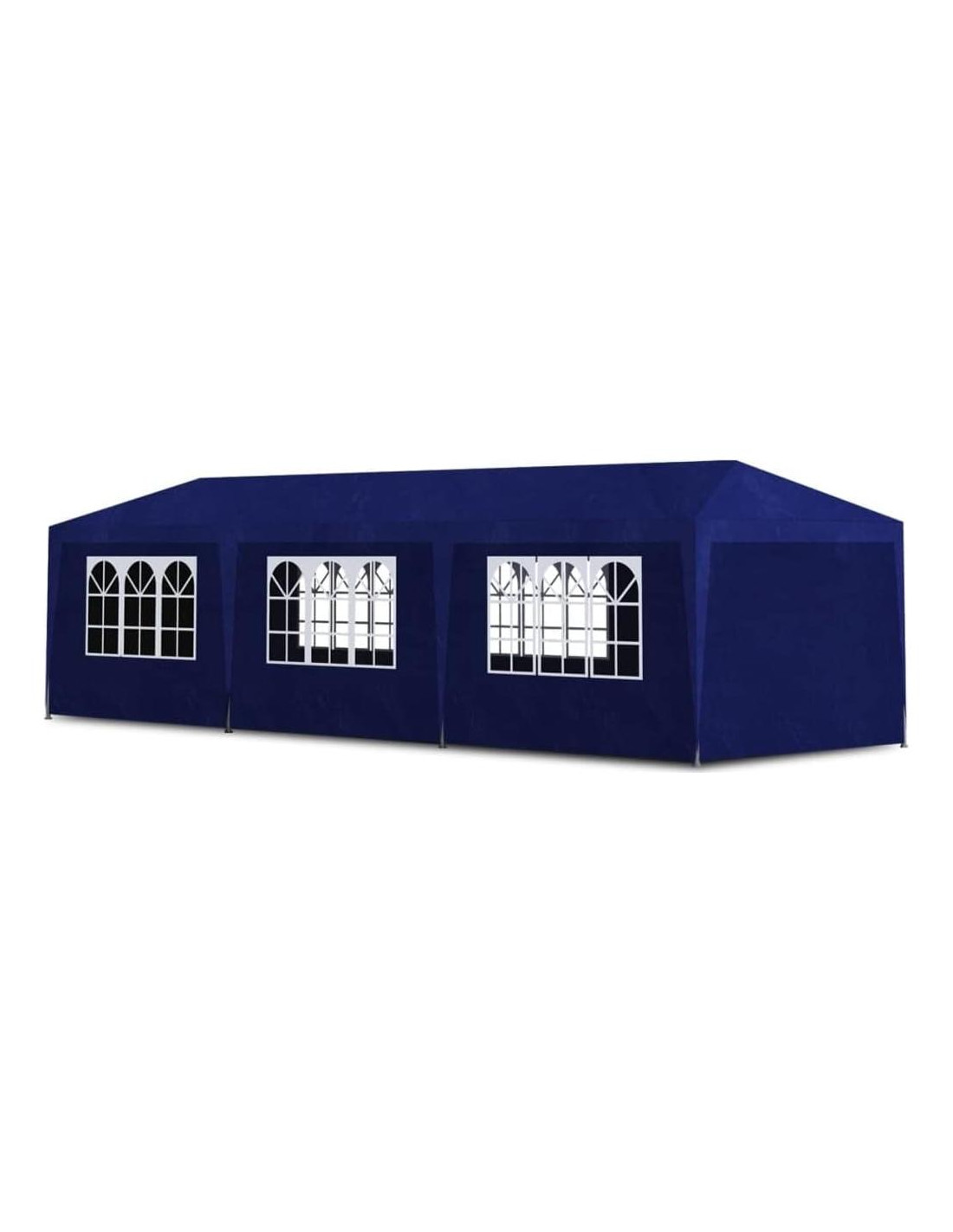 Descripción Nuestra carpa de fiesta proporciona un lugar maravilloso para entretener a su familia y amigos en todo tipo de fiestas y reuniones al aire libre. La carpa de jardín está hecha de material de polietileno resistente a los rayos UV y al agua, por lo que es muy práctica para uso exterior. La estructura está fabricada con acero resistente a la corrosión, lo que hace que la carpa al aire libre sea estable y duradera. La carpa de fiesta tiene paneles laterales, cada uno con ventanas decorativas, y 1 panel de puerta con cremallera para un fácil acceso. El gazebo de jardín es fácil de montar. NOTA: Este producto NO DEBE ser utilizado bajo mal tiempo, como viento fuerte, lluvia intensa, nieve, tormenta, etc. Especificaciones Color: Azul Material: Techo de PE y paneles laterales + estructura de acero Dimensiones: 9.1 m x 3.0 m x 2.4 m (L x A x A) Altura del alero desde el suelo: 2.0 m Resistente a los rayos UV y al agua Materiales de montaje incluidos Tela: Polietileno: 100%