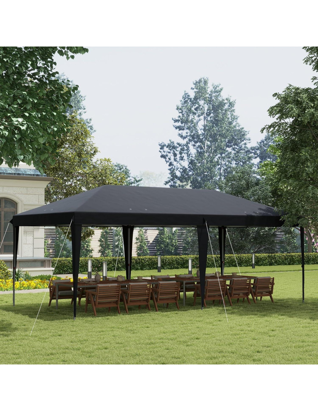 Crea el espacio perfecto para reuniones al aire libre con esta Carpa Pop Up de 3.05m x 6.1m. Diseñada para durabilidad y conveniencia, este refugio instantáneo proporciona sombra amplia para fiestas, eventos, bodas, barbacoas y más. Con un techo robusto reforzado con trusses y tubos de acero recubiertos en polvo de 3.18cm de grosor, esta carpa ofrece una estabilidad excepcional contra el viento y los elementos. La parte superior de la carpa está fabricada con tela Oxford de primera calidad con un recubrimiento plateado que resiste tanto la decoloración por UV como la lluvia ligera. Los ojales colocados estratégicamente a lo largo de la carpa evitan la acumulación de agua, reduciendo la carga y manteniendo la integridad de la estructura. El montaje y desmontaje son sencillos gracias al marco plegable y la bolsa de transporte conveniente. Simplemente despliega, extiende las patas y asegúralo al suelo con estacas. Tres configuraciones de altura ajustables te permiten personalizar la altura de la carpa para adaptarse a tus necesidades. Dimensiones generales: 5.84m L x 2.95m W. Altura lateral: 1.93m H. Altura del pico: 2.64m H. Tamaño plegado: 33cm L x 22.23cm W x 114.9cm H. Nota: Aunque esta carpa está diseñada para resistir lluvia ligera, recomendamos desarmarla y guardarla durante períodos prolongados de lluvia intensa, nieve, viento, aguanieve o granizo.