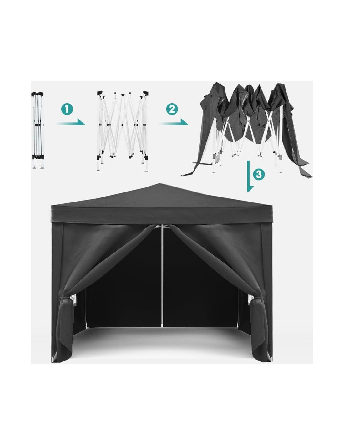 Montaje Rápido y Fácil Esta carpa plegable de 10'' está diseñada para conveniencia y facilidad. Es rápida para eventos al aire libre, permitiéndote crear sombra y refugio en solo minutos. Con un diseño simple que no requiere herramientas, puedes montarla con la ayuda de solo 2-3 amigos. Es especialmente beneficiosa para reuniones inesperadas, picnics lluviosos o días de playa, proporcionando alivio instantáneo de los elementos. Uso Esta carpa portátil es tu solución ideal para diversas ocasiones al aire libre. Ya sea que estés organizando una reunión familiar, montando un puesto para un pequeño negocio, o disfrutando de un día en la playa, esta carpa proporciona un área espaciosa y cómoda para tus invitados. Asegura que todos disfruten del evento, sin importar la intensidad del sol o las condiciones climáticas. Duradera y Protectora Hecha de tela impermeable con un marco de acero resistente, esta carpa está construida para durar. Bloquea efectivamente el 99% de los rayos, protegiéndote a ti y a tus invitados de la luz solar intensa. Con el cuidado adecuado, te servirá bien a través de numerosos eventos al aire libre, convirtiéndola en una inversión inteligente para cualquier entusiasta del aire libre. Entorno Con la adición de cuatro paredes laterales removibles, puedes modificar la carpa de acuerdo a tus preferencias o cambios en el clima. Las paredes laterales cuentan con ventanas para visibilidad y secciones con cremalleras. Esta característica es particularmente útil durante las noches más frescas o en casos de cambios climáticos inesperados, brindándote tranquilidad al ser el anfitrión. Portabilidad Conveniente Esta carpa no solo es fácil de montar; también es fácil de transportar. La bolsa de transporte ligera hace que sea simple llevarla contigo a cualquier lugar. Además, con las bolsas de arena incluidas para mayor estabilidad, tendrás todo lo que necesitas para una exitosa reunión al aire libre. Guárdala fácilmente y prepárate para tu próxima aventura sin complicaciones.
