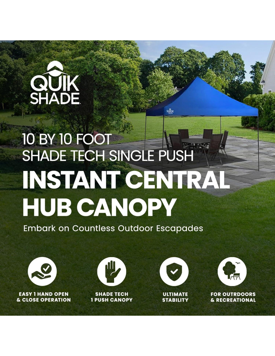 Características. Carpa de empuje Shade tech 1. Perfecta para todas tus actividades recreativas al aire libre, en el patio trasero, tailgate, atléticas y de camping. Fácil de operar con un hub central para una fácil operación de apertura y cierre con una mano. Diseño único que proporciona una gran protección solar y sombra para hasta 12 personas durante cualquier actividad. Especificaciones. Acabado Azul. Tamaño 10 x 10 pies (3.05 x 3.05 m). Peso 31.28 lbs (14.18 kg)