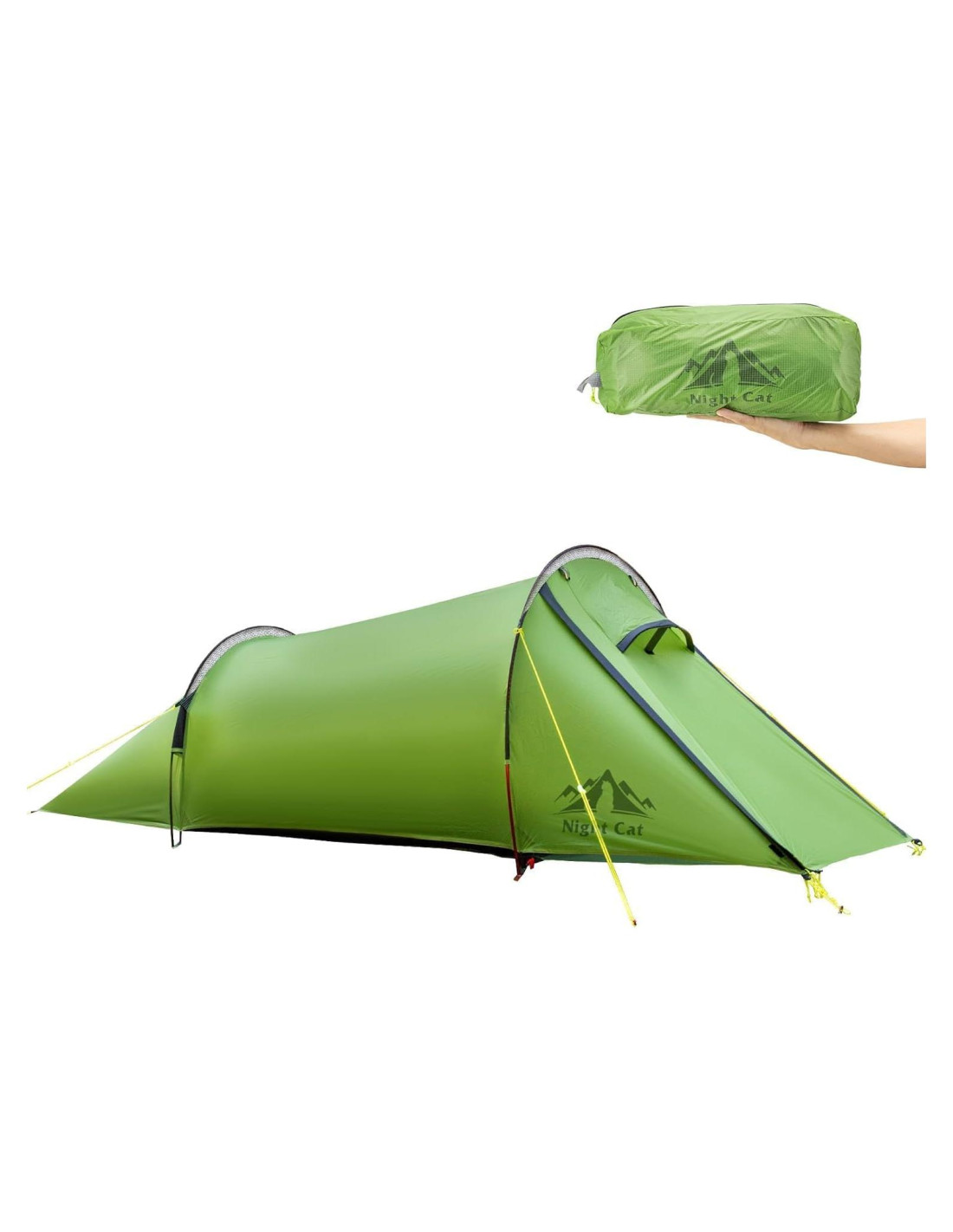 - Ultraligera y compacta: Pesando solo 1.5kg y empaquetándose a 40 x 15.7 x 15.7cm, esta tienda cabe fácilmente en tu mochila. Hecha de nylon 15D para la cubierta y nylon 20D para el suelo, es perfecta para senderismo ultraligero sin sacrificar durabilidad.