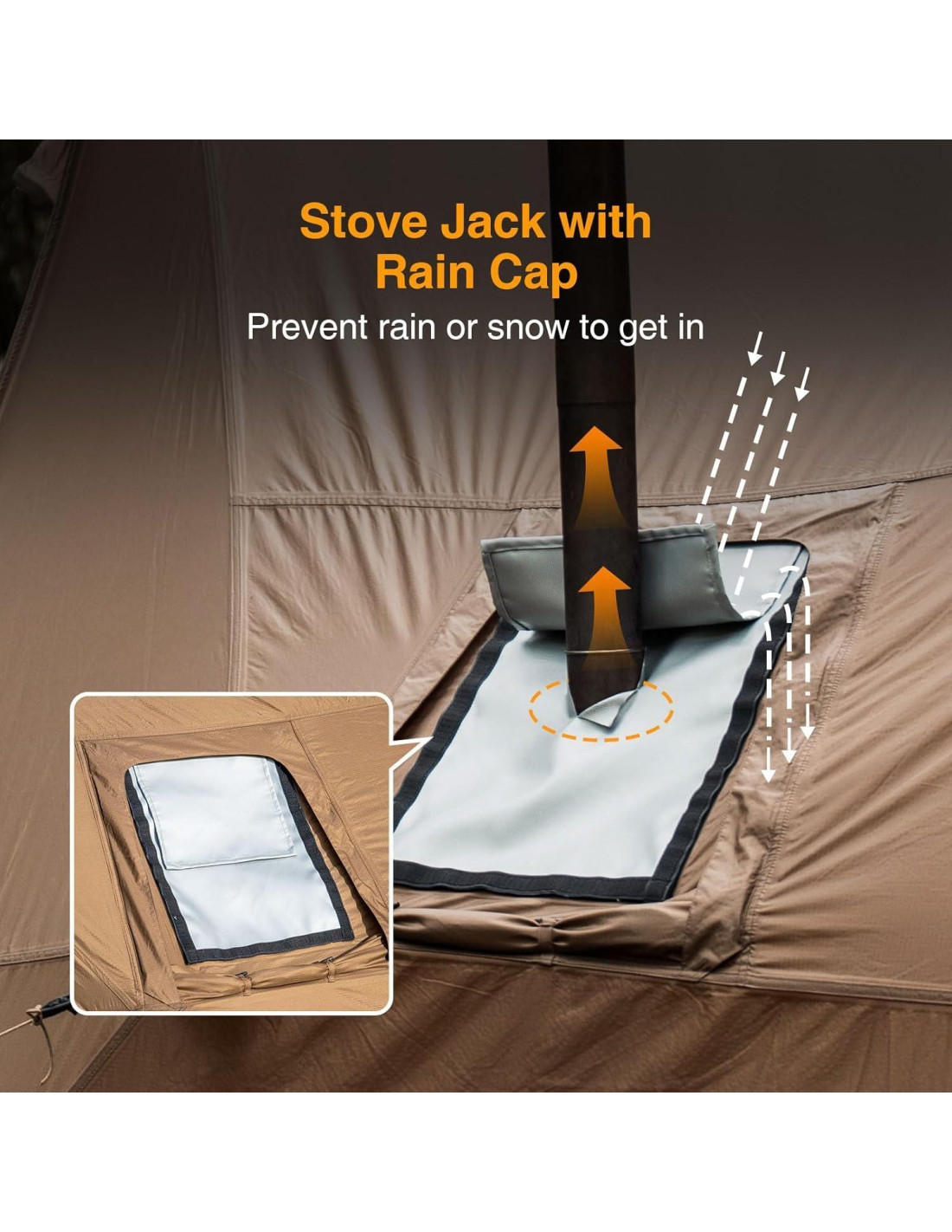 - Componentes incluidos: Cuerdas de sujeción, Estacas, Salida para estufa, Bolsa de almacenamiento, Postes de carpa