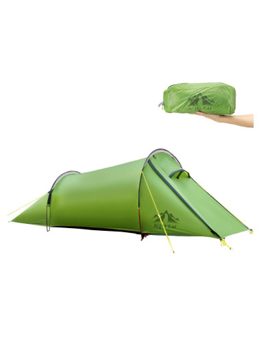 - Ultraligera y compacta: Pesando solo 1.5kg y empaquetándose a 15.7 x 15.7 x 15.7cm, esta tienda cabe fácilmente en tu mochila. Hecha de nylon 15D para la cubierta y nylon 20D para el suelo, es perfecta para senderismo ultraligero sin sacrificar durabilidad.