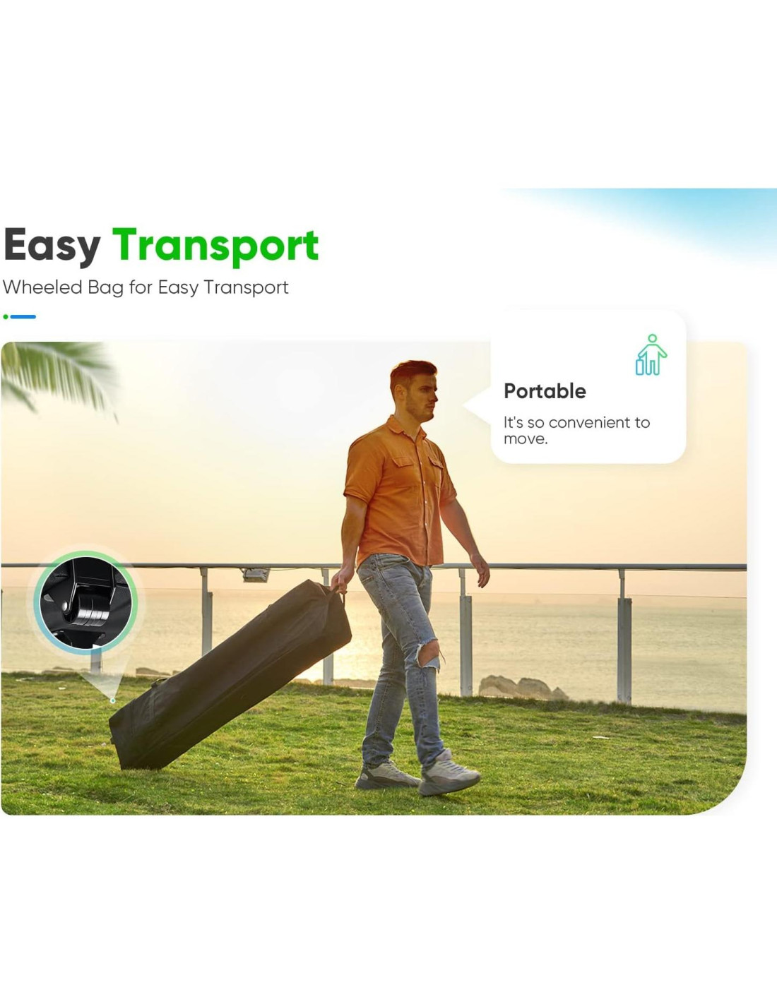 - La carpa fácil de montar y las cuatro paredes laterales se pueden plegar fácilmente y almacenar en la bolsa de transporte con ruedas, lo que facilita su transporte y almacenamiento en el maletero de tu auto. ¡Disfruta de actividades al aire libre con facilidad!