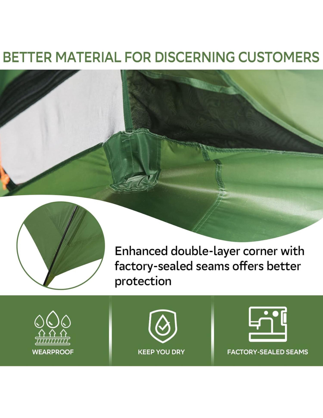 - IMPERMEABLE Y DURADERO: Esta tienda impermeable para 2 personas aplica Poliéster con recubrimientos PU 5000. Material resistente a la intemperie con costuras selladas de fábrica y tela de doble capa aplicadas a las esquinas de la tienda impermeable para una mejor seguridad que te mantendrá seco y cómodo en todas las estaciones y condiciones climáticas. Clostnature no suministra PE (Polietileno) para el suelo de la tienda de senderismo, que tiene un olor muy desagradable y es más voluminoso.