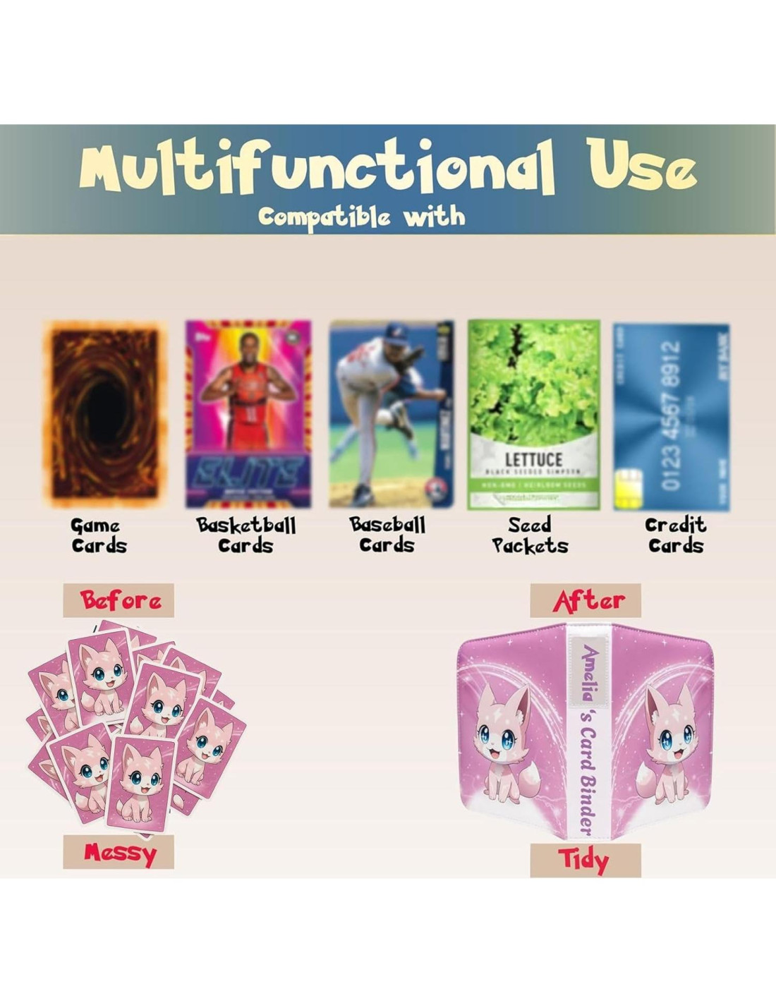 En COPPERLOOM, nos especializamos en soluciones innovadoras para coleccionistas de cartas. Nuestro exclusivo soporte para cartas cuenta con un bolsillo para tarjeta de nombre y pegatinas de pestaña personalizadas, ambos diseñados para ayudarte a categorizar tu colección con facilidad. Estamos dedicados a proporcionarte productos que combinan funcionalidad, seguridad y estilo, para que tus cartas estén siempre perfectamente organizadas y accesibles. El álbum de cartas rosa es la mejor opción para niñas y mujeres. El álbum de cartas con el gato Sacura es una magnífica idea de regalo para niñas.