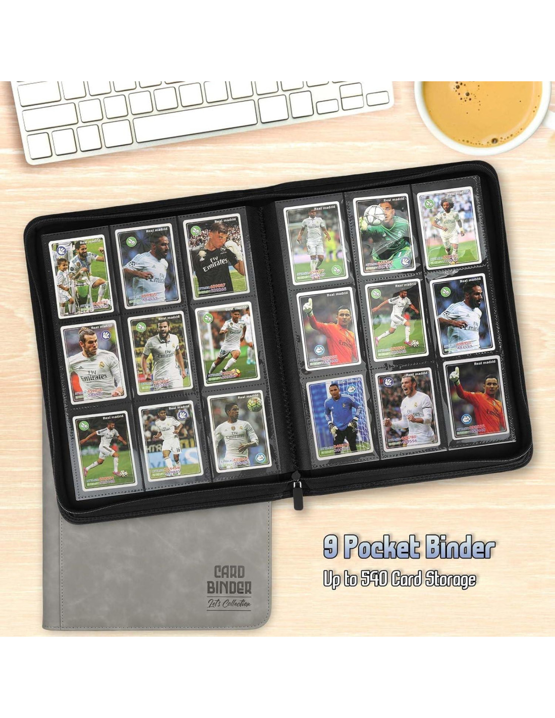 - Diseño Integrado y Amplio Almacenamiento: Equipado con páginas de fundas de cartas de doble cara integradas y acomoda de manera segura hasta 540 cartas coleccionables. Cada página cuenta con 9 fundas, asegurando un ajuste ceñido y seguro para tus valiosas cartas. La artesanía integrada y el diseño espacial no solo mantienen tus cartas organizadas, sino que también previenen la deformación causada por la presión interna o la encuadernación del anillo.