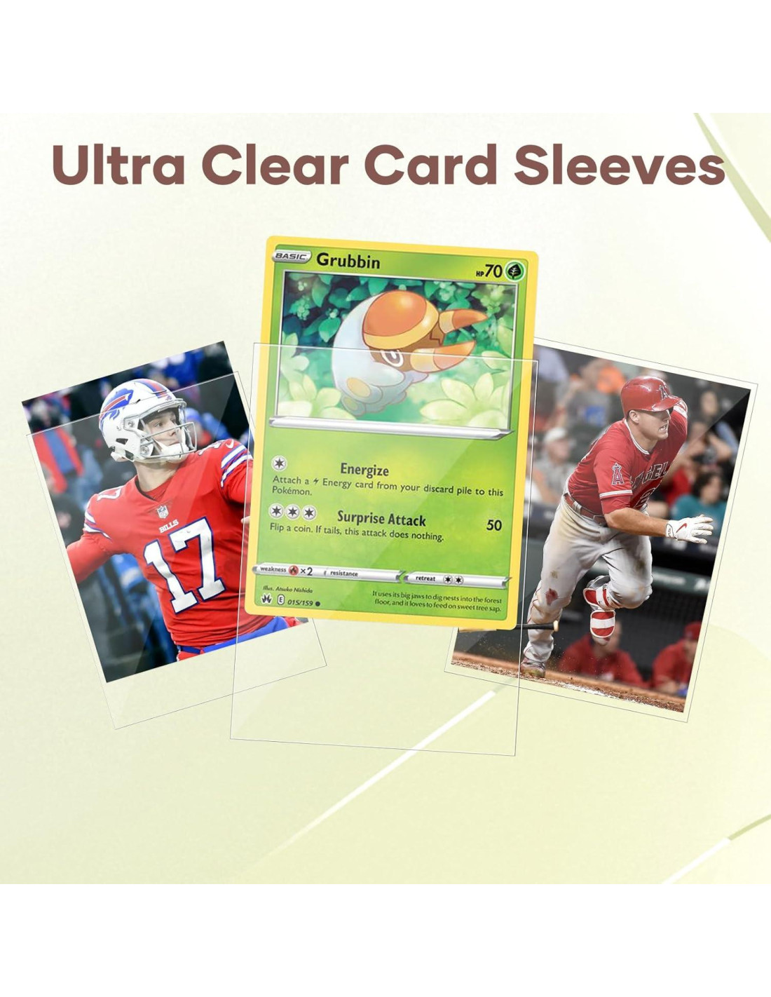 - [Exhibición Cristalina] Estas fundas para cartas deportivas están hechas de material transparente de alta calidad, asegurando que tus cartas sean claramente visibles y mostrando cada detalle. Ya sea para almacenamiento o exhibición, estas fundas de cartas transparentes presentan tus cartas de manera elegante y organizada.