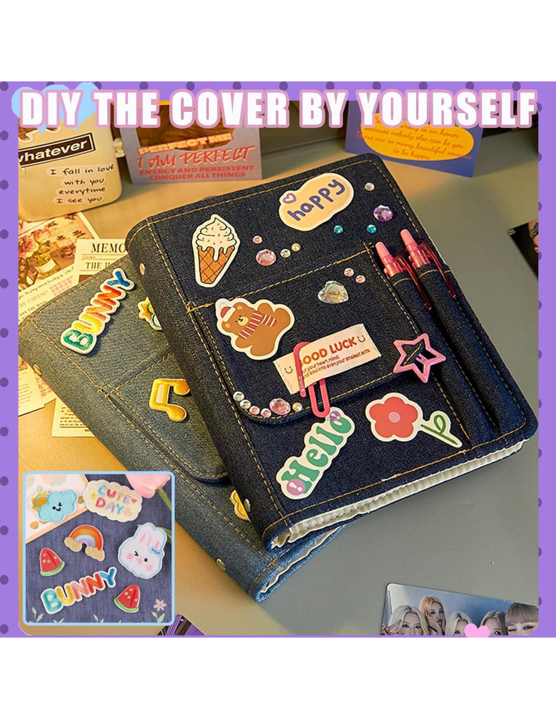 - Carpeta Linda Y2K: Esta carpeta de photocard kpop está diseñada especialmente con material de tela de denim, puedes personalizarla agregando algunos adhesivos de tela autoadhesivos para hacerla más estilosa.