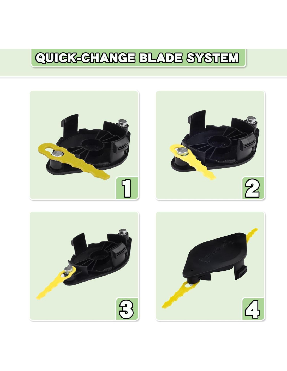 - CUCHILLAS DE CARGA RÁPIDA El cabezal de cortadora con cuchillas de FourShow, Compatible con cortadora de césped Black Decker, no requiere tornillos ni herramientas, solo carga la cuchilla directamente, la cuchilla se puede reemplazar en segundos.