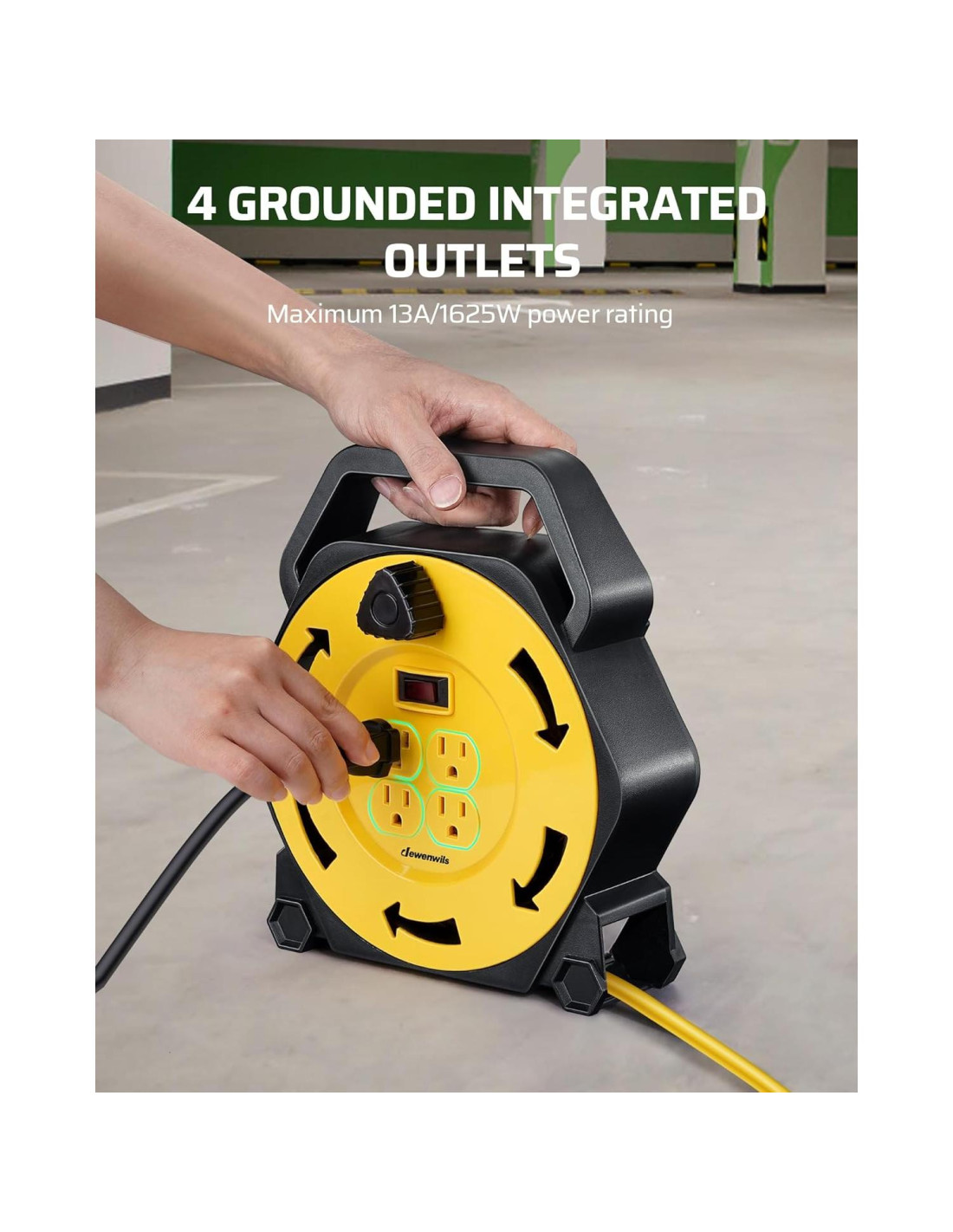 - [ Compacto y Fácil de Transportar ] Pesa solo 1.42 kg; fácil de agarrar con el mango en la parte superior; este práctico carrete de cable de extensión es ligero y portátil; muy conveniente para llevar a un sitio de trabajo o mantener a mano en el garaje; certificado por UL
