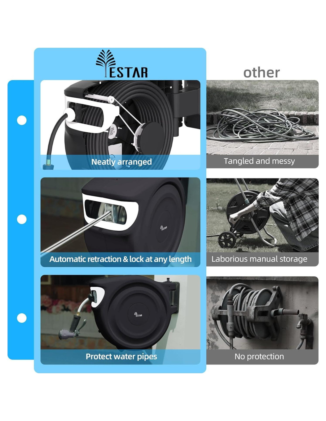 - [Garantía de 36 Meses y Soporte Profesional] Disfrute de 36 meses de garantía de calidad en su carrete de manguera de agua. Para problemas, contáctenos para soluciones rápidas y soporte amigable. ¡Yestar maneja todas las preocupaciones de manera profesional! Carretes de manguera retráctiles ideales para longevidad exterior.