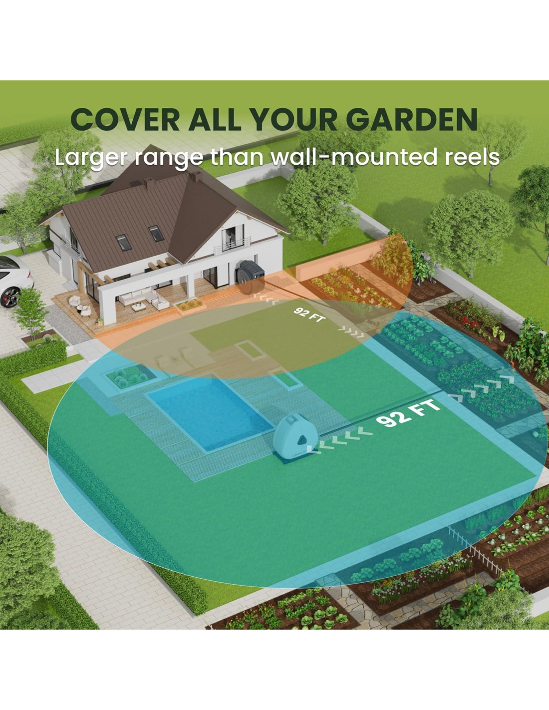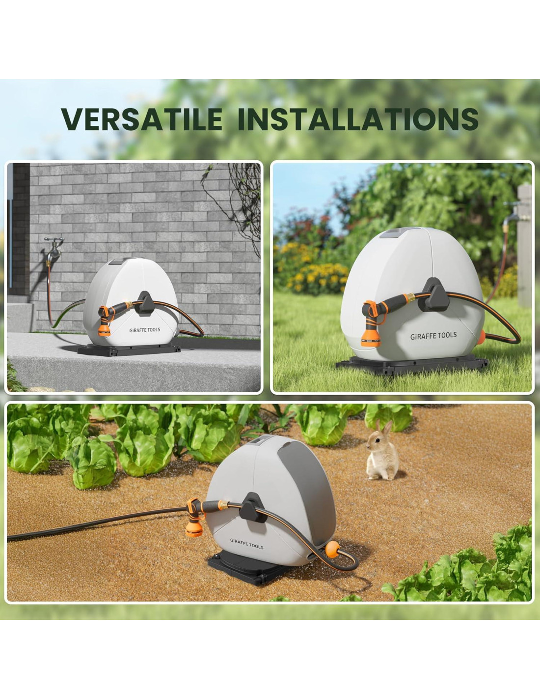 - MAYOR COBERTURA, ALMACENAMIENTO INVISIBLE - Este carrete montado en el suelo disfruta de un 20% más de cobertura que los rivales montados en la pared. Esconde el carrete discretamente detrás de las plantas, saca la manguera y bloquea a cualquier longitud que desees. ¡Un carrete que se oculta tan bien como funciona!