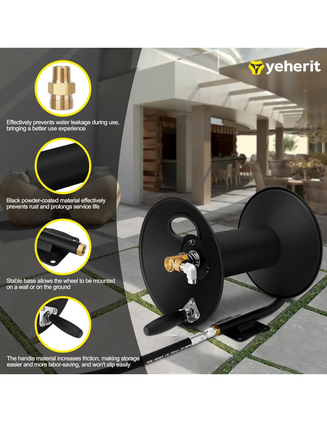 - Componentes incluidos: Carrete de Manguera de Lavadora de Alta Presión