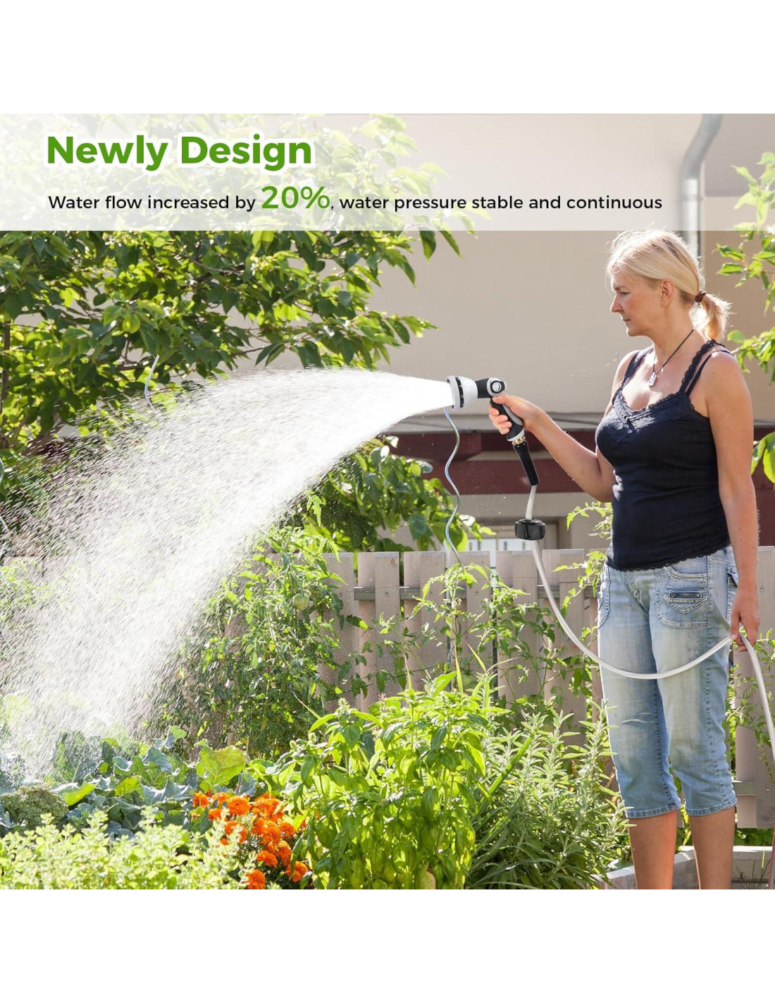 - [9 Modos de Rociado Ajustables] : La boquilla de la manguera de jardín soporta 9 modos para satisfacer tus diferentes propósitos de riego. Se puede usar para lavar coches, regar, limpiar, bañar mascotas, etc.