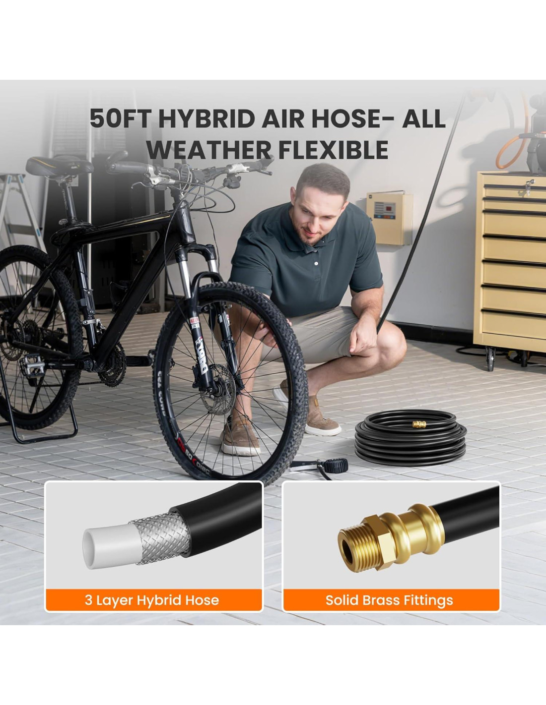 - Rewind Automático: Simplemente tire suavemente de la manguera y el carrete de manguera de aire se retraerá completamente. No se moleste con las mangueras desordenadas