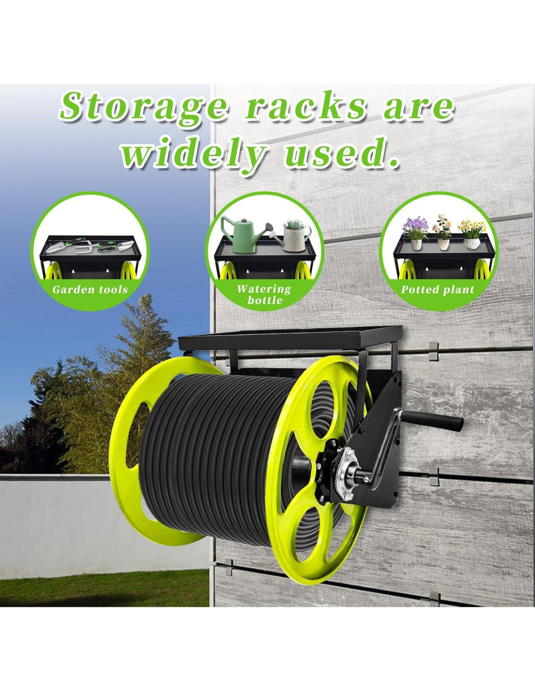 - Almacenamiento conveniente: Los carretes de manguera de jardín con un estante de almacenamiento hacen que almacenar las mangueras de jardín sea simple y ordenado. El mango y la guía de manguera fáciles de ensamblar le ayudan a enrollar manualmente la manguera de manera uniforme en el carrete, reduciendo el desorden.