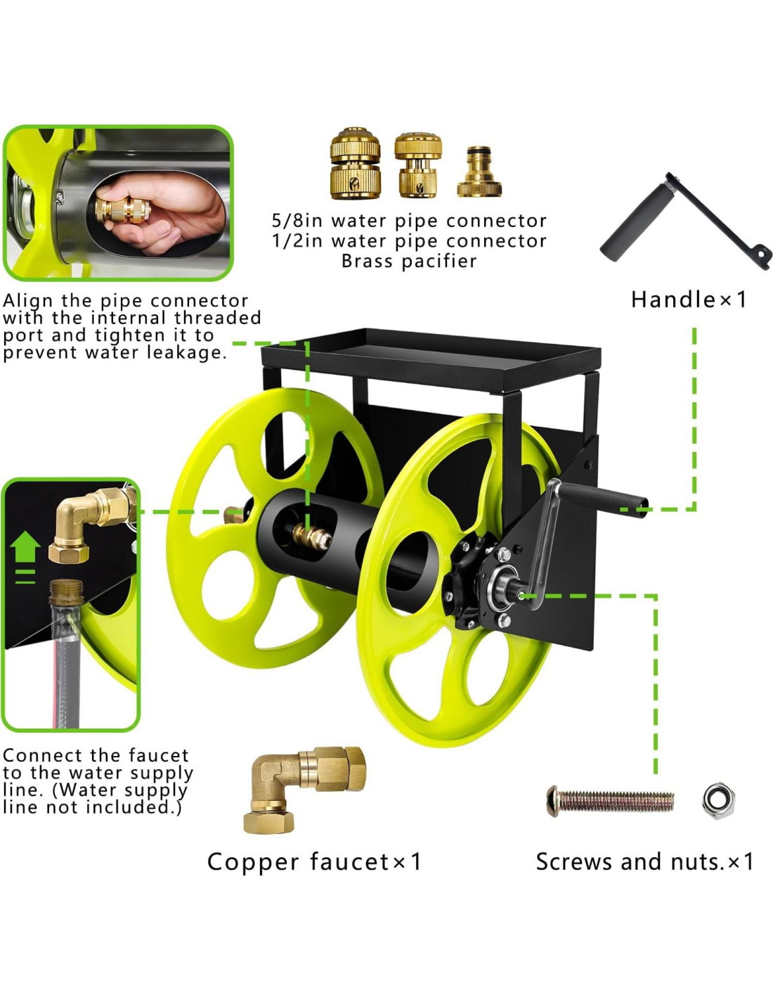 - Extremadamente duradero: Este modelo de carrete de manguera de metal está hecho de hierro fundido y recubierto con un recubrimiento 100% a prueba de óxido, asegurando que se pueda usar durante años incluso en entornos de alta temperatura y alta humedad.
