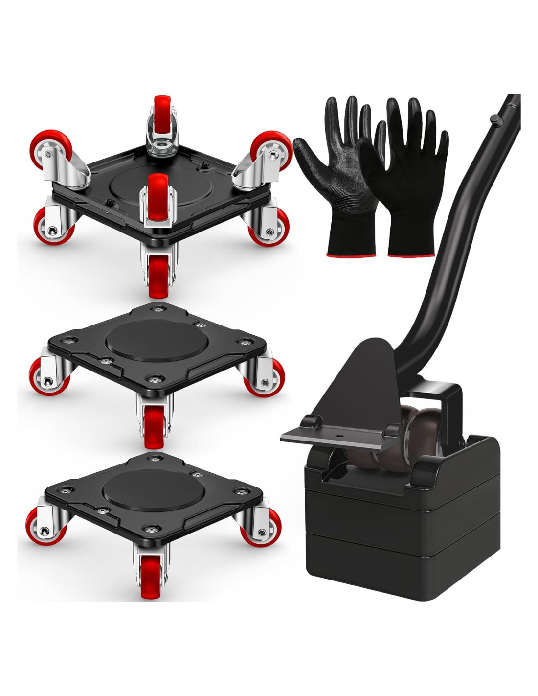 - ESPECIFICACIONES: Incluye 4 carretillas de muebles, 4 almohadillas anti-deslizantes de doble cara, 4 almohadillas anti-deslizantes de un solo lado, 1 elevador con base y 1 par de guantes de seguridad. Las 4 carretillas pueden soportar un peso total de 499.0 kg, el elevador puede sostener hasta 226.8 kg