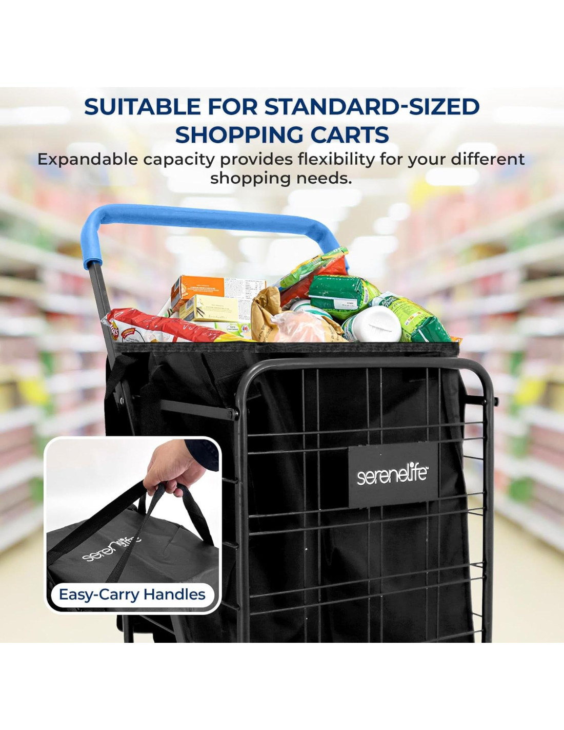 - USO MULTIFUNCIONAL - Adecuado para compras, lavandería, equipaje y más, este bolso de carrito de compras se adapta a diversas necesidades. Su construcción de alta calidad y facilidad de mantenimiento lo convierten en una adición versátil a tus esenciales del hogar.