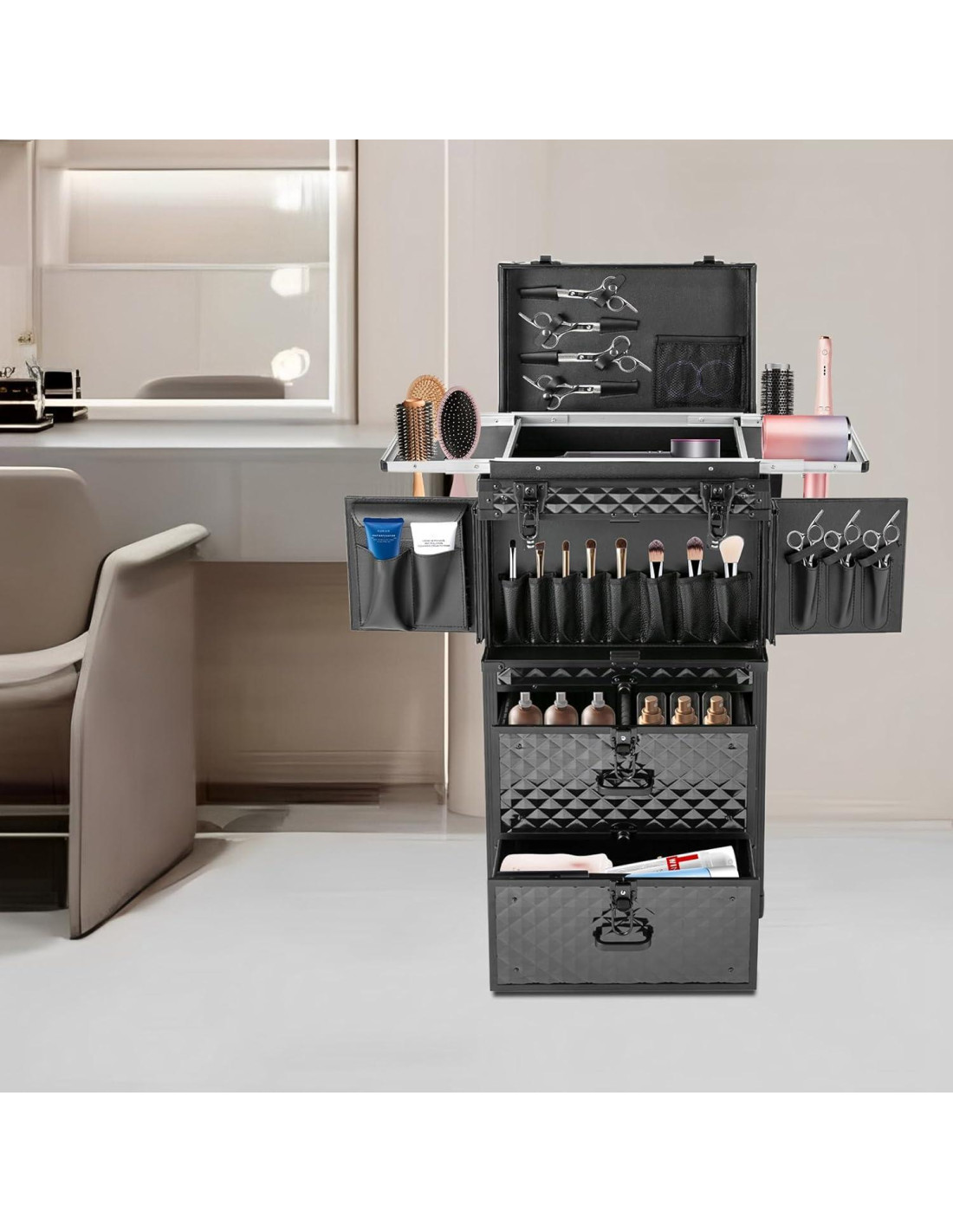 - Almacenamiento Clasificado: Viene con una gran capacidad de múltiples capas con múltiples bolsillos, hebillas para tijeras y 2 cajones, y cada capa está diseñada para almacenar diferentes herramientas. Puedes usarlo para almacenar tus cosméticos, secador de pelo, herramientas de barbería, peines, tijeras, etc., manteniendo tus herramientas más organizadas.