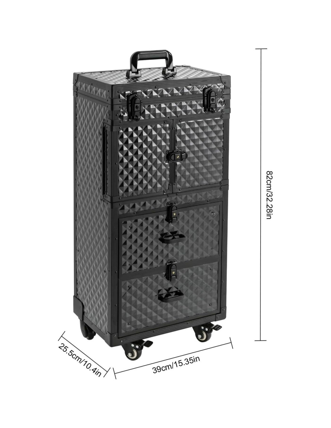 - Diseños Portátiles: Cuatro ruedas universales (dos de ellas tienen frenos), una barra de tirón y un mango superior te permiten mover este estuche de maquillaje rodante fácilmente, ya sea que te estés moviendo en interiores o viajando por negocios o placer.