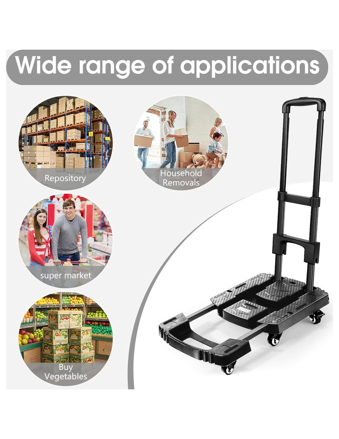 - Ayudante Práctico y Versátil: Ya sea que estés en casa, en la oficina/almacén, en movimiento o al aire libre, es perfecto para mover, transportar, viajar y llevar artículos de varios tamaños y formas. Definitivamente, el carro de mano Voipvvii es un compañero confiable para cualquier tarea